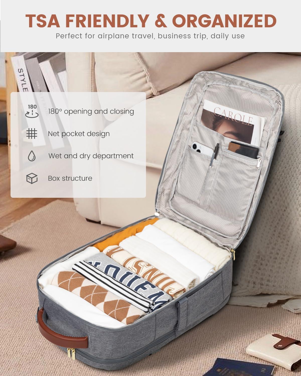 Airline Approved & TSA Friendly : Experience stress-free air travel with our carry on backpack. Measuring 14″ x 8.3″ x 18.5″, it fits comfortably in overhead bins and under the seat. Designed for quick security checks, it opens 180 degrees, making it the perfect travel companion for your journeys.