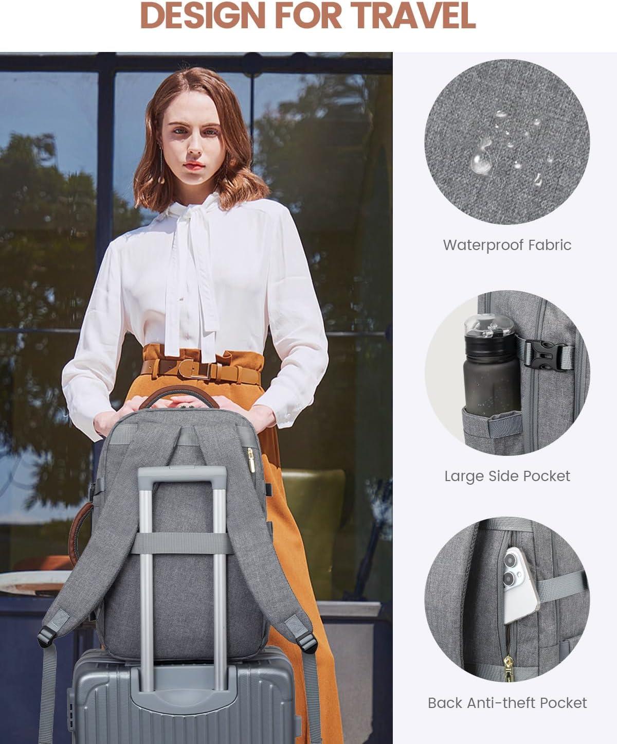 imageLOVEVOOK Travel Backpack For Women 40L Carry On Backpack Flight Approved TSA Personal Item Travel Bag Fits 17 Inch Laptop Business Weekender Overnight Waterproof Daypack With 2 Cubes GreyPinkGreybrown