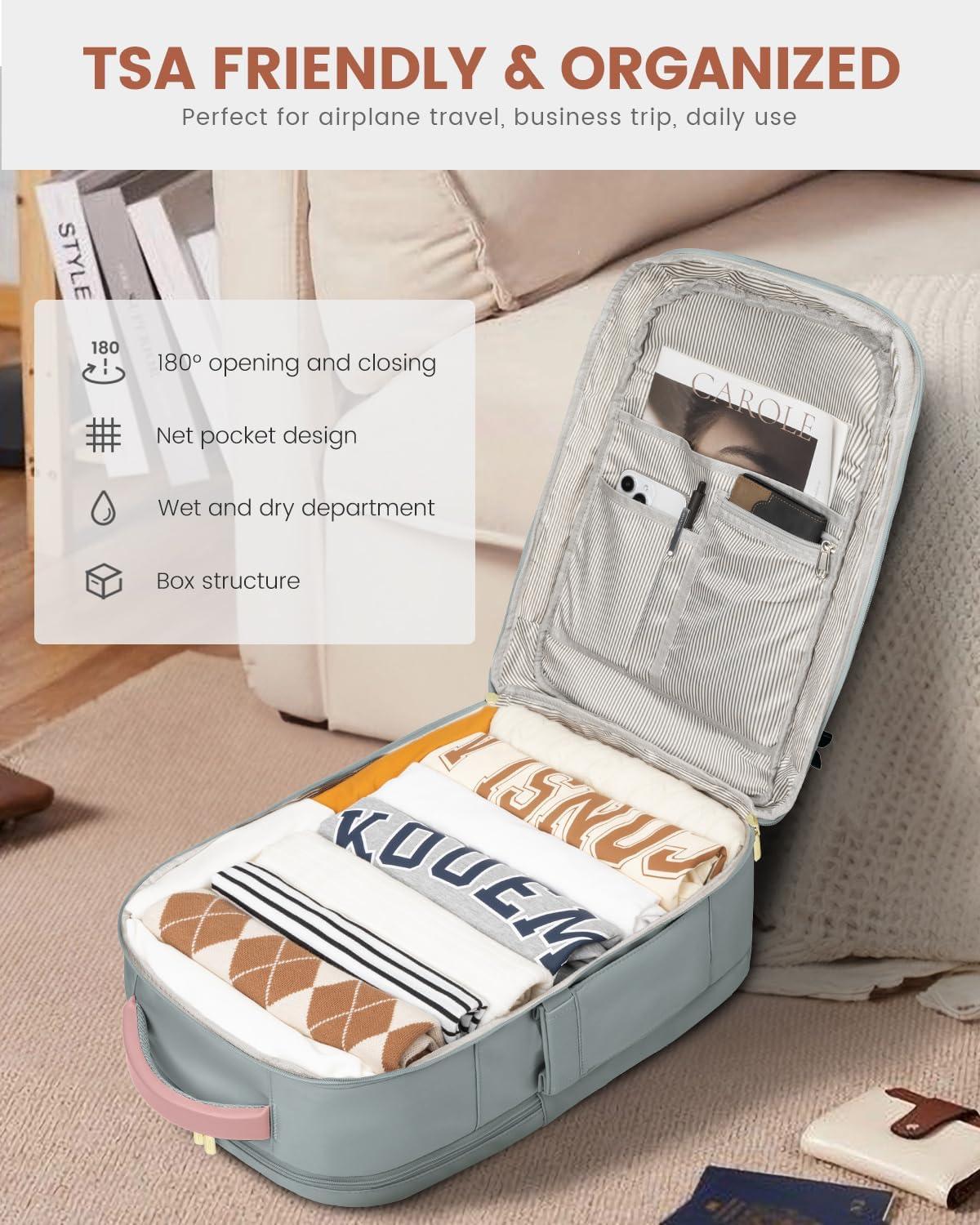 Airline Approved & TSA Friendly : Experience stress-free air travel with our carry on backpack. Measuring 14″ x 8.3″ x 18.5″, it fits comfortably in overhead bins and under the seat. Designed for quick security checks, it opens 180 degrees, making it the perfect travel companion for your journeys.