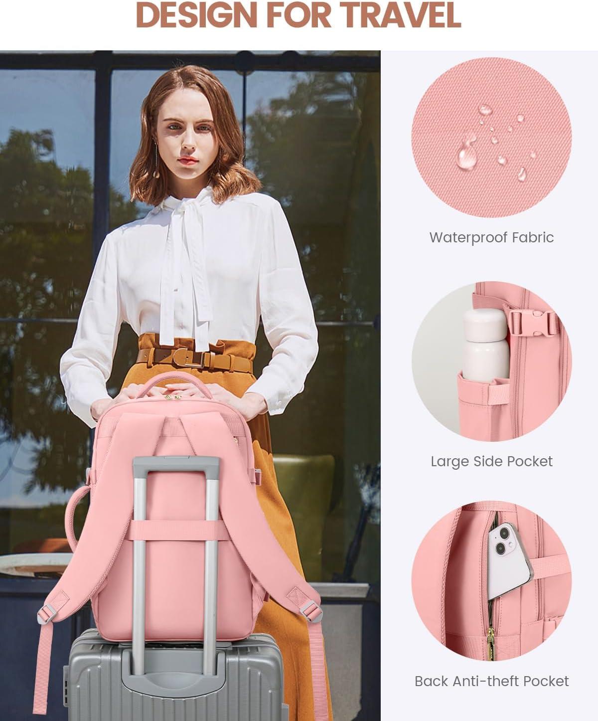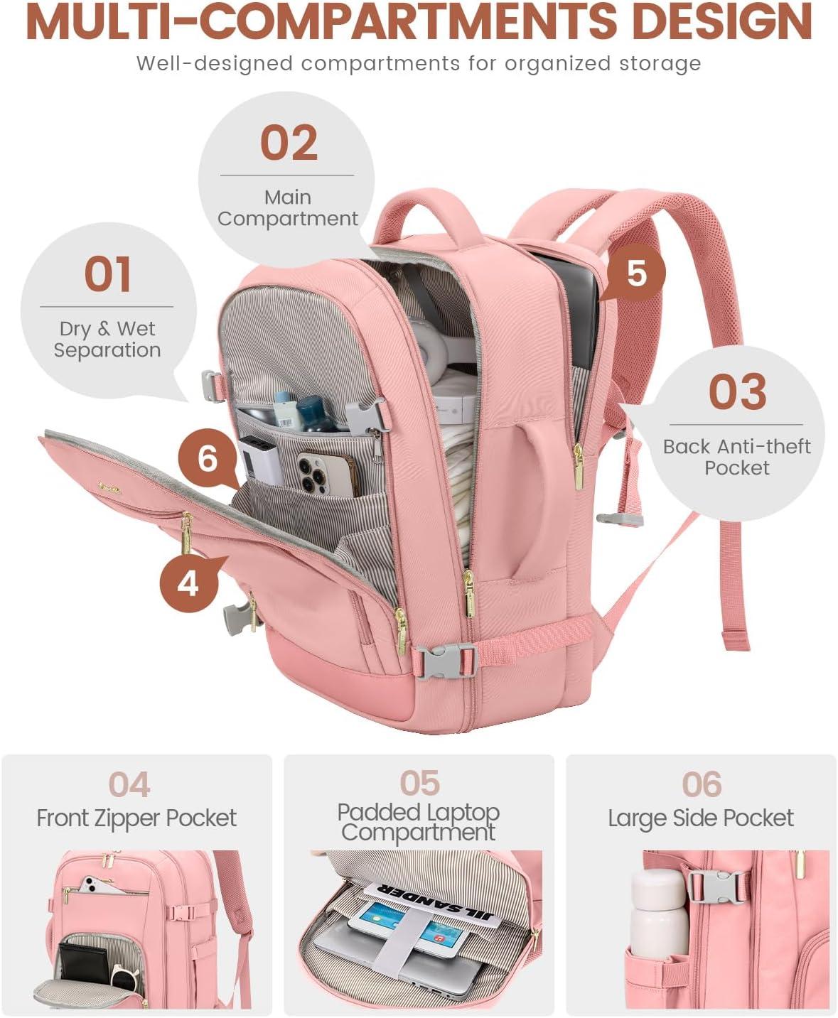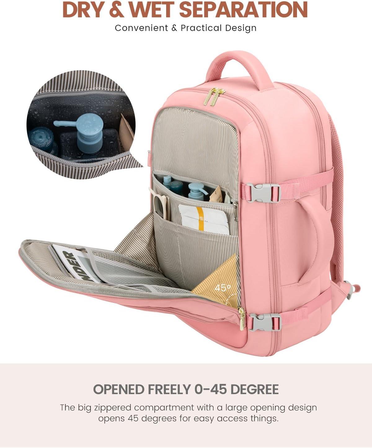 With 2 Packing Cubes & Wet Pocket : Our travel backpack for women equipped with 1 carry-on pocket, deal for neatly storing underwear, socks, and small clothes. And equipped one shoe bag with 16.5 inches/42cm long, can hold 1~2 pair of shoes. The high-density waterproof wet pocket is perfect for toiletries and damp clothes, keeping your travel belongings tidy and separated.