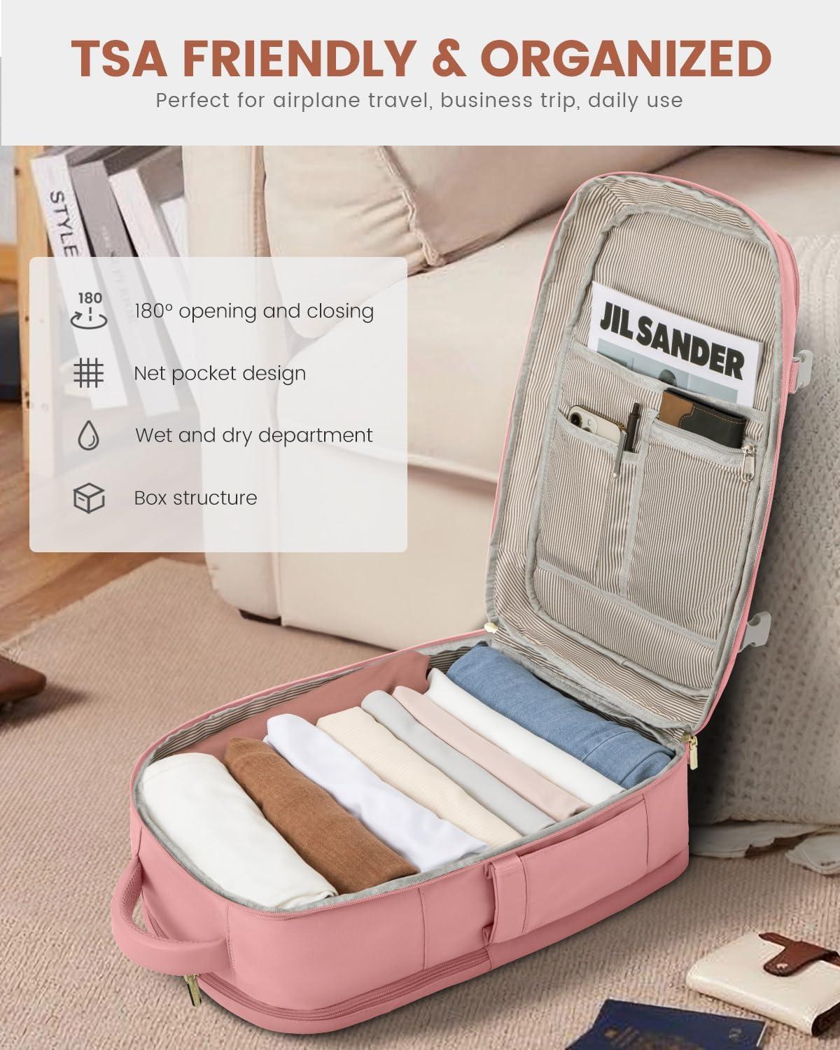 Airline Approved & TSA Friendly : Experience stress-free air travel with our carry on backpack. Measuring 14″ x 8.3″ x 18.5″, it fits comfortably in overhead bins and under the seat. Designed for quick security checks, it opens 180 degrees, making it the perfect travel companion for your journeys.