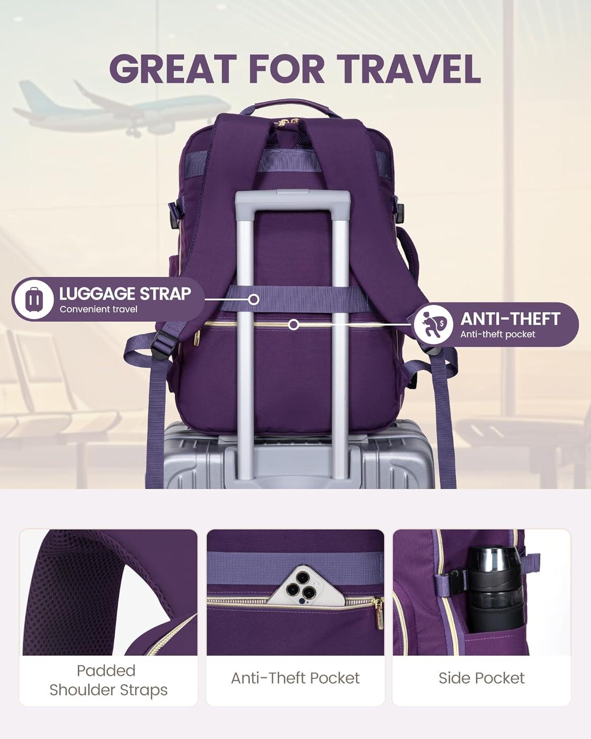 ✈【Large Capacity & Multiple Pockets】: The travel backpack has a 40L large capacity and 4 main compartments, which can meet daily and travel needs. The travel backpack for women's main compartment can store a lot of things, including 5-8 pieces of clothing, shoes, books, and many other items. The separate laptop compartment is padded with EVA foam to provide the best protection for your 17″ laptop and 12.9″ iPad. The front compartment has many pockets to keep your belongings organized.