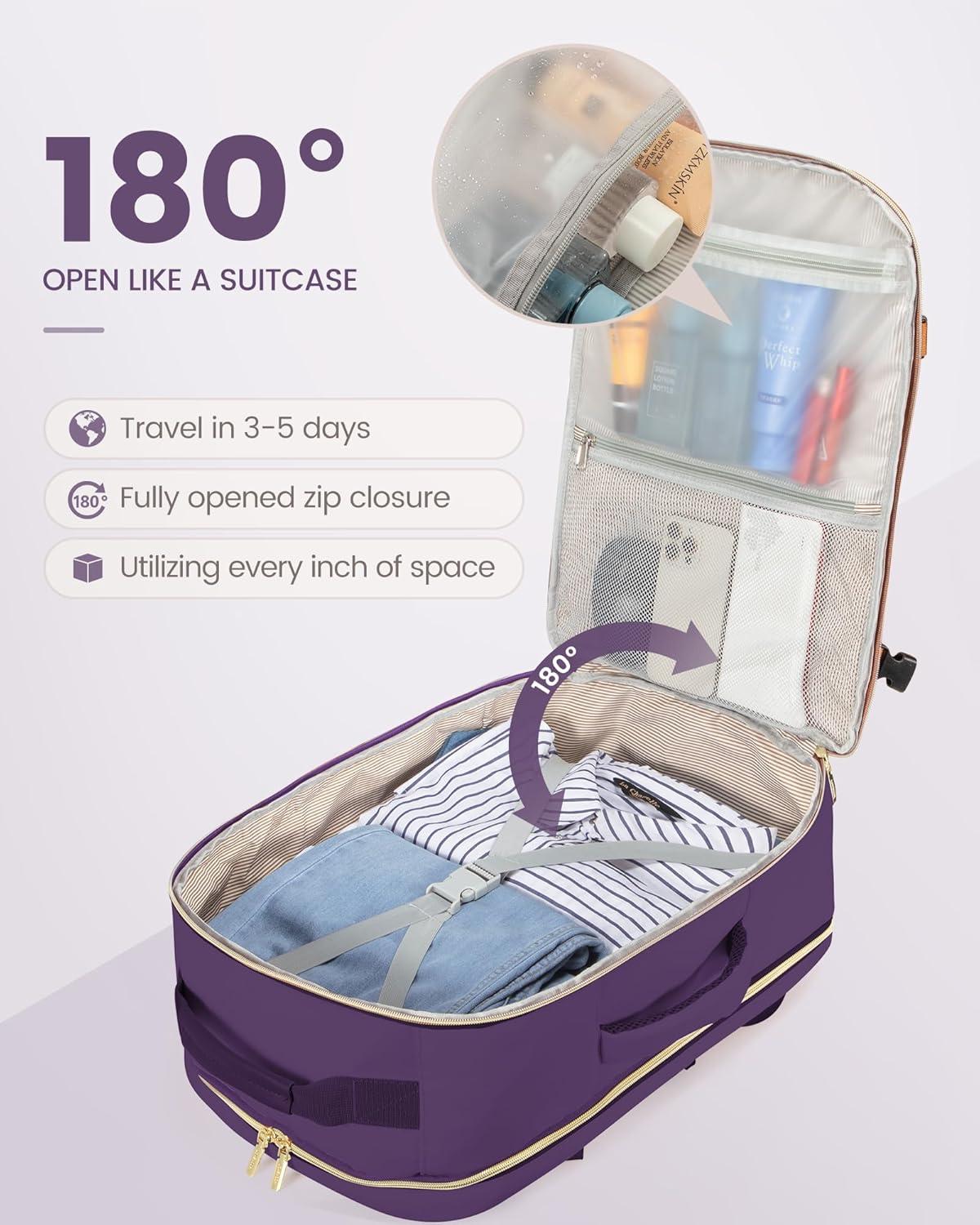 ✈【As Personal Item Airline Approved:】 The size of the carry on backpack is 18*14*8inch. Meets the maximum size allowed by most International Air Transport Association (IATA) flights, and can be placed in the overhead luggage compartment and under seat luggage for airlines, suitable for Spirit, Frontier, Easy Jet, Jet Blue, and other airlines. This travel backpack for women airline approved can be freely opened 90-180 degrees easily and quickly at the airport security check.