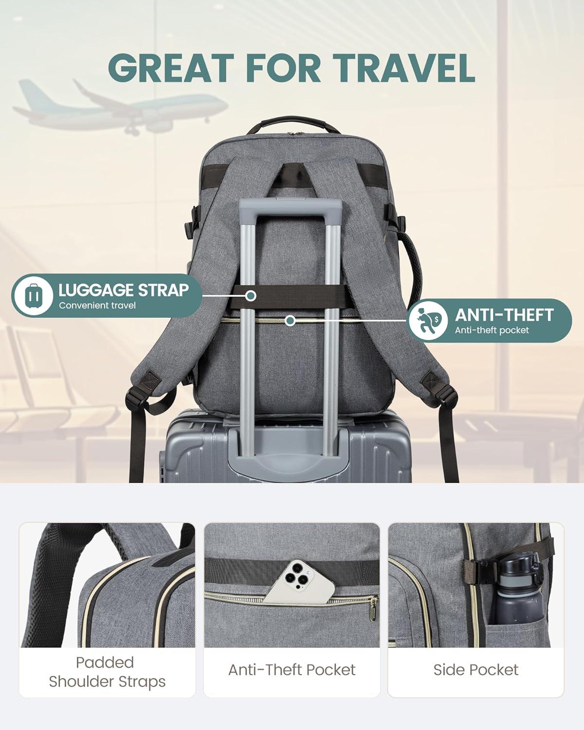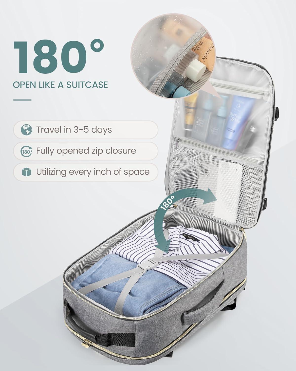 ✈【As Personal Item Airline Approved:】 The size of the carry on backpack is 18*14*8inch. Meets the maximum size allowed by most International Air Transport Association (IATA) flights, and can be placed in the overhead luggage compartment and under seat luggage for airlines, suitable for Spirit, Frontier, Easy Jet, Jet Blue, and other airlines. This travel backpack for women airline approved can be freely opened 90-180 degrees easily and quickly at the airport security check.