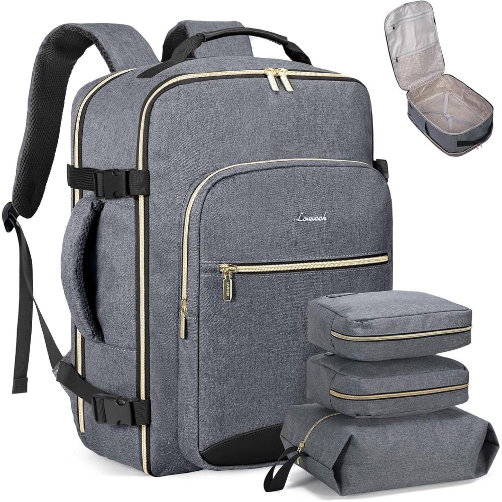 imageLOVEVOOK Travel Backpack for Women ampamp Men 40LAirline Approved Carry On Backpack Travel EssentialsTSA Carry on LuggageWaterproof Personal Item Travel BagSuitcase with 3 Packing CubesLight grayPinkGrayblack
