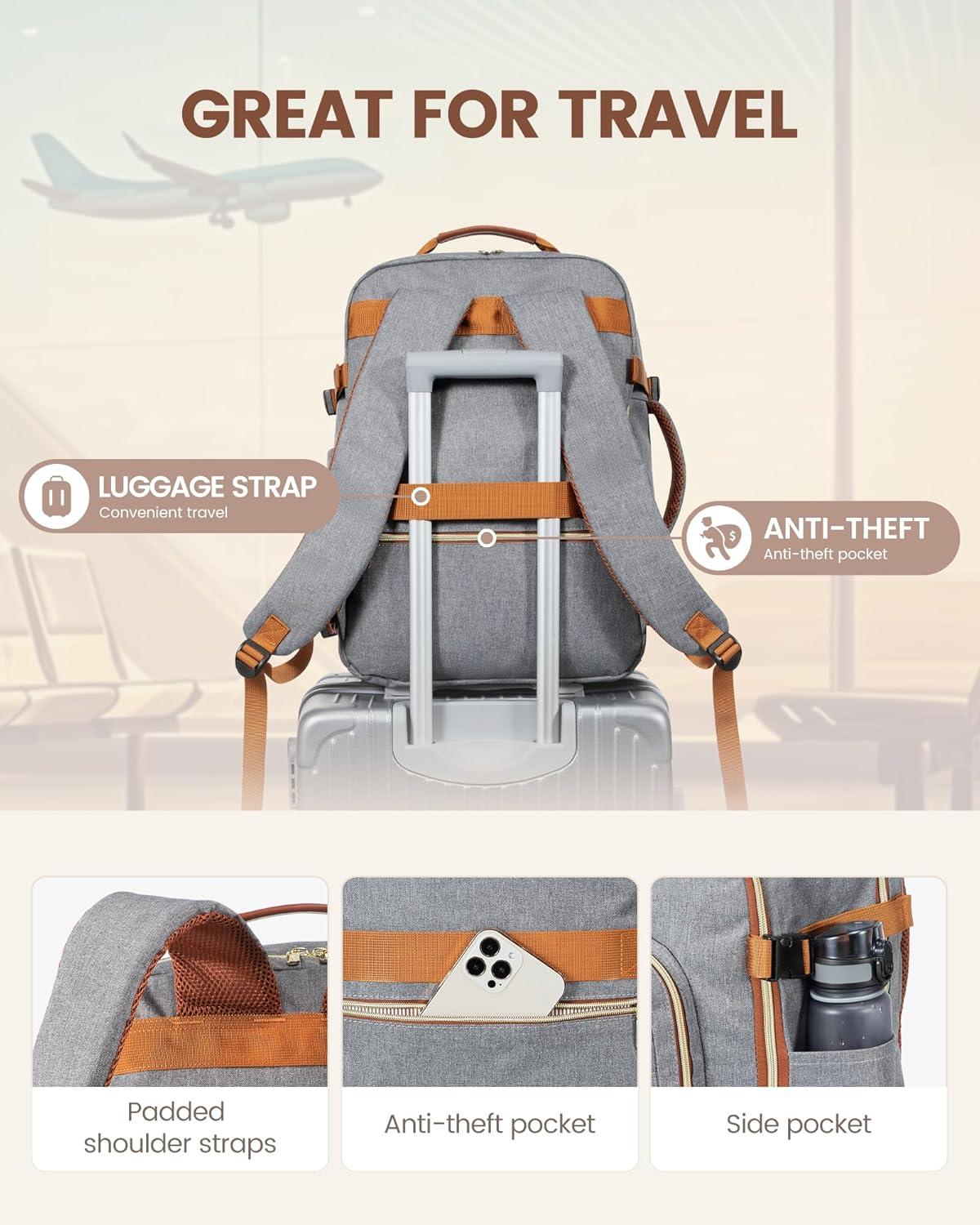 ✈【Large Capacity & Multiple Pockets】: The travel backpack has a 40L large capacity and 4 main compartments, which can meet daily and travel needs. The travel backpack for women's main compartment can store a lot of things, including 5-8 pieces of clothing, shoes, books, and many other items. The separate laptop compartment is padded with EVA foam to provide the best protection for your 17″ laptop and 12.9″ iPad. The front compartment has many pockets to keep your belongings organized.
