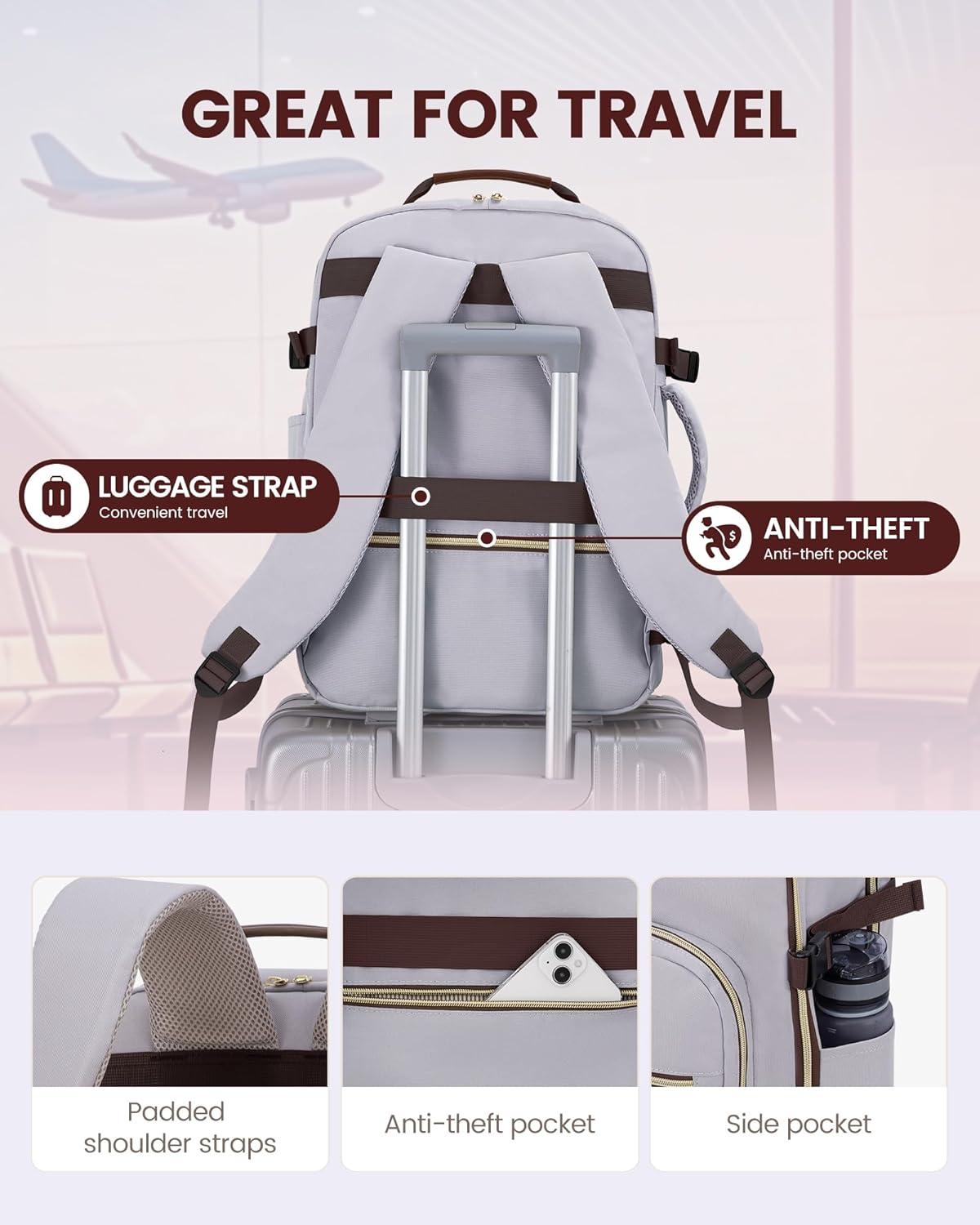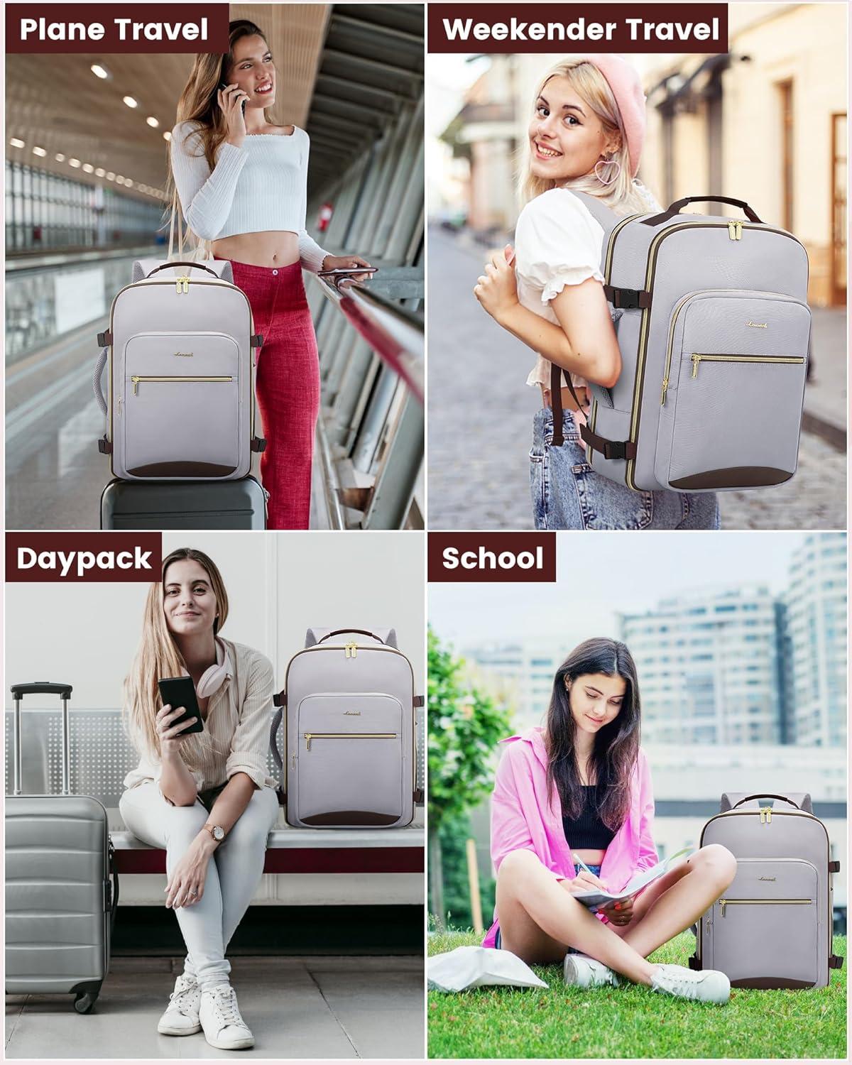 imageLOVEVOOK Travel Backpack for Women ampamp Men 40LAirline Approved Carry On Backpack Travel EssentialsTSA Carry on LuggageWaterproof Personal Item Travel BagSuitcase with 3 Packing CubesLight grayPinkLight Greydark Coffee Color