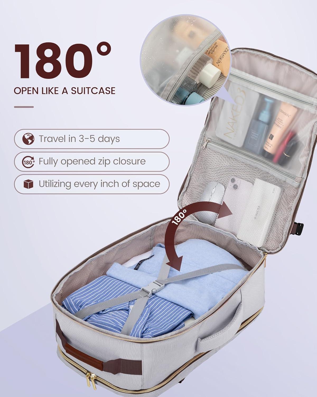 ✈【As Personal Item Airline Approved:】 The size of the carry on backpack is 18*14*8inch. Meets the maximum size allowed by most International Air Transport Association (IATA) flights, and can be placed in the overhead luggage compartment and under seat luggage for airlines, suitable for Spirit, Frontier, Easy Jet, Jet Blue, and other airlines. This travel backpack for women airline approved can be freely opened 90-180 degrees easily and quickly at the airport security check.