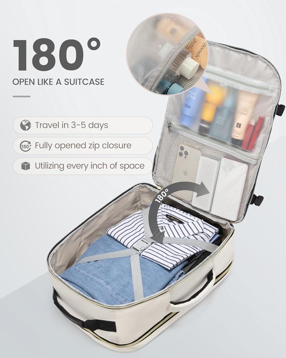 ✈【As Personal Item Airline Approved:】 The size of the carry on backpack is 18*14*8inch. Meets the maximum size allowed by most International Air Transport Association (IATA) flights, and can be placed in the overhead luggage compartment and under seat luggage for airlines, suitable for Spirit, Frontier, Easy Jet, Jet Blue, and other airlines. This travel backpack for women airline approved can be freely opened 90-180 degrees easily and quickly at the airport security check.