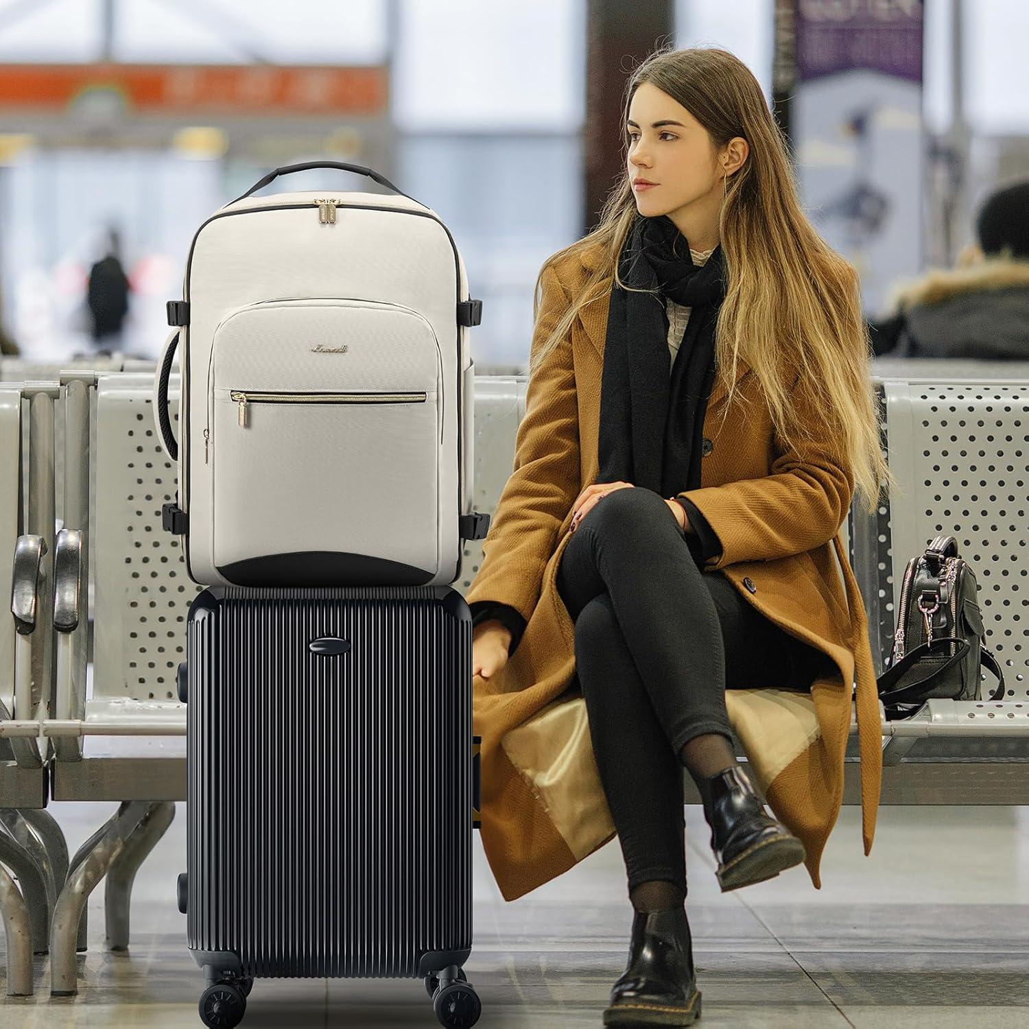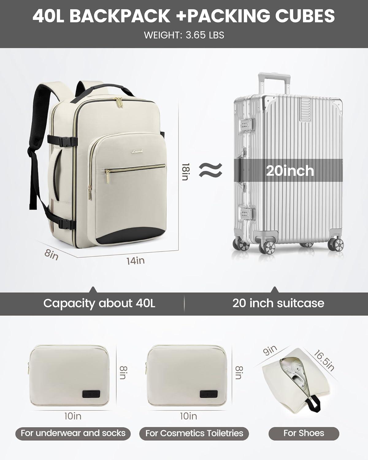 imageLOVEVOOK Travel Backpack for Women ampamp Men 40LAirline Approved Carry On Backpack Travel EssentialsTSA Carry on LuggageWaterproof Personal Item Travel BagSuitcase with 3 Packing CubesLight grayPinkBeigeblack