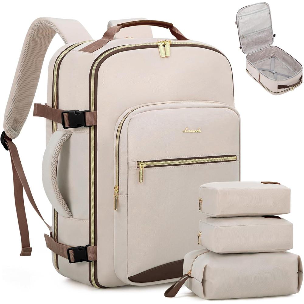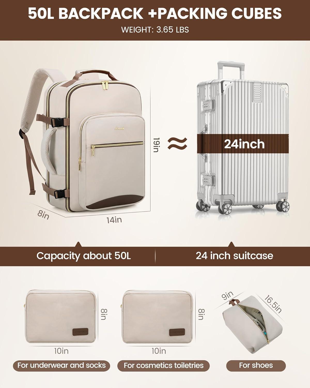 imageLOVEVOOK Travel Backpack for Women ampamp Men 40LAirline Approved Carry On Backpack Travel EssentialsTSA Carry on LuggageWaterproof Personal Item Travel BagSuitcase with 3 Packing CubesLight grayPinkPrimarycoffee