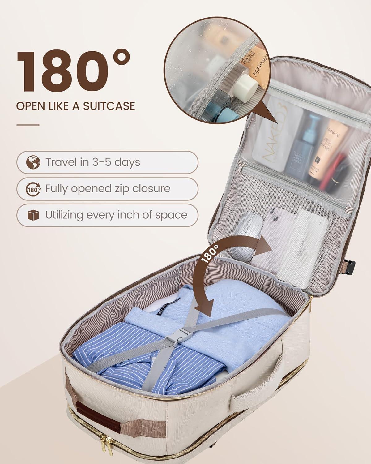 ✈【As Personal Item Airline Approved:】 The size of the carry on backpack is 18*14*8inch. Meets the maximum size allowed by most International Air Transport Association (IATA) flights, and can be placed in the overhead luggage compartment and under seat luggage for airlines, suitable for Spirit, Frontier, Easy Jet, Jet Blue, and other airlines. This travel backpack for women airline approved can be freely opened 90-180 degrees easily and quickly at the airport security check.