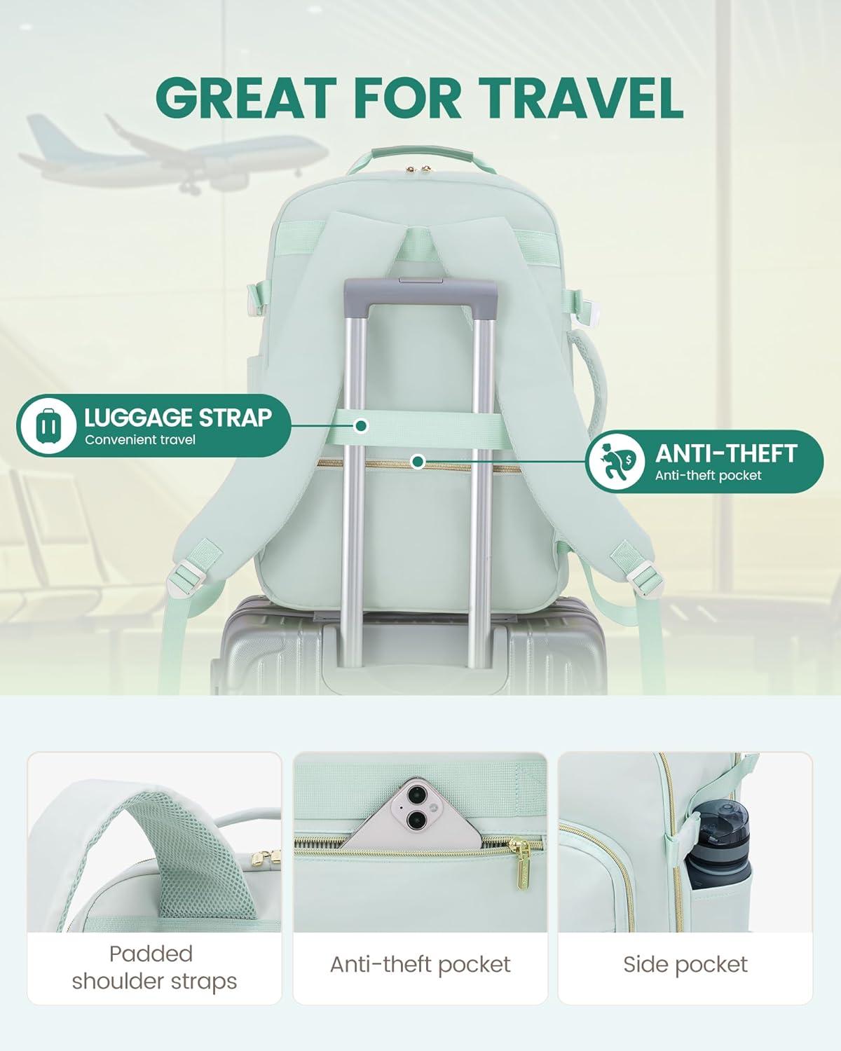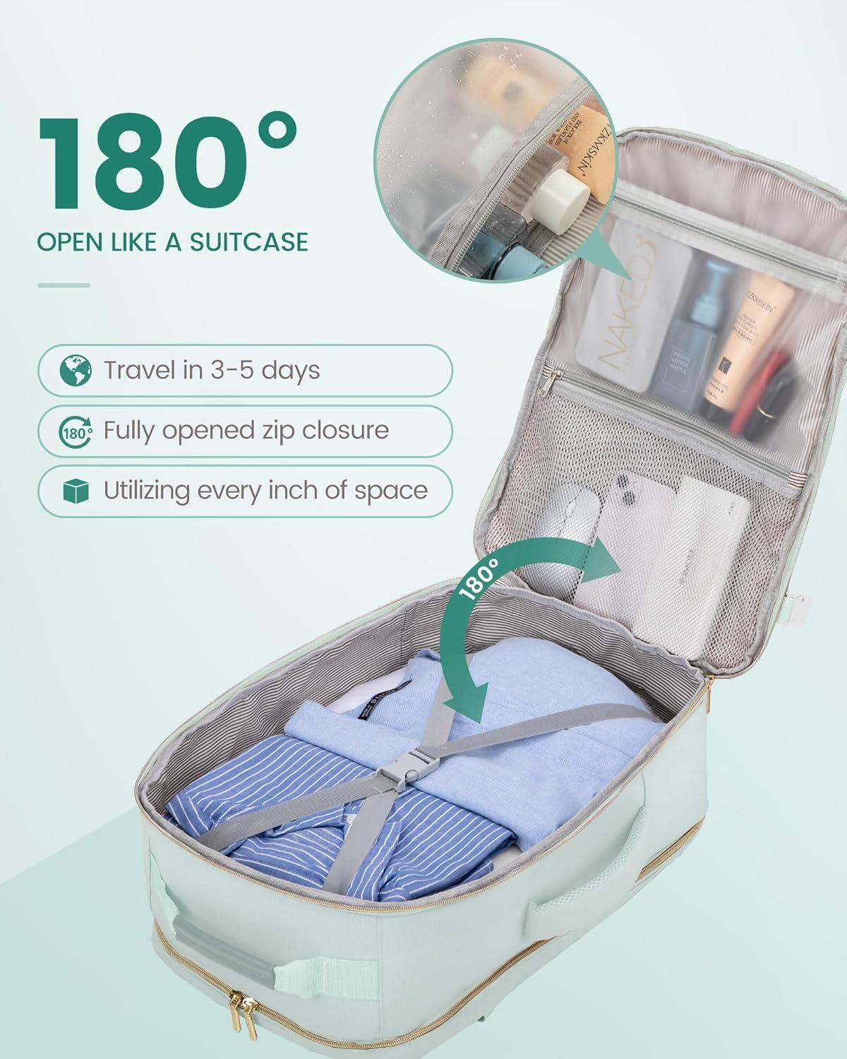 ✈【As Personal Item Airline Approved:】 The size of the carry on backpack is 18*14*8inch. Meets the maximum size allowed by most International Air Transport Association (IATA) flights, and can be placed in the overhead luggage compartment and under seat luggage for airlines, suitable for Spirit, Frontier, Easy Jet, Jet Blue, and other airlines. This travel backpack for women airline approved can be freely opened 90-180 degrees easily and quickly at the airport security check.
