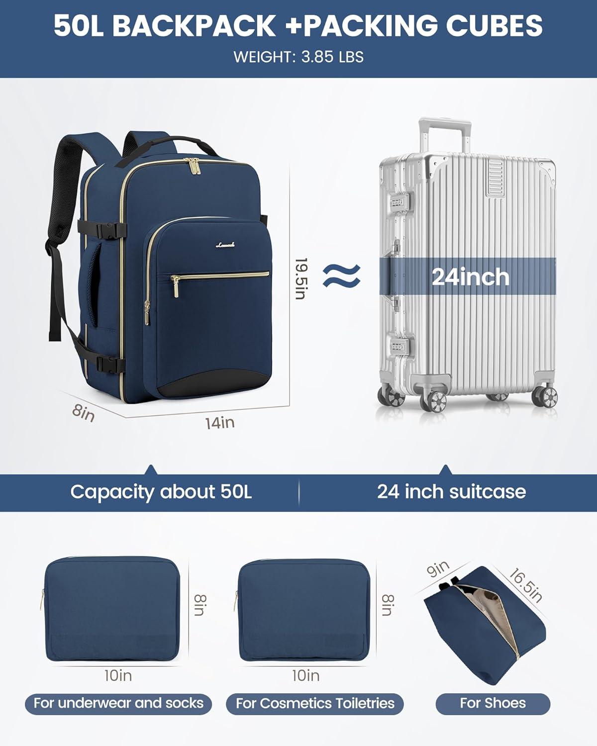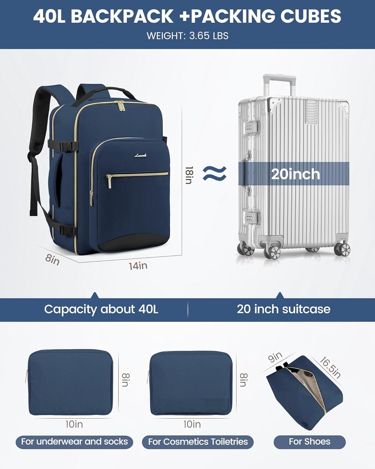 imageLOVEVOOK Travel Backpack for Women ampamp Men 40LAirline Approved Carry On Backpack Travel EssentialsTSA Carry on LuggageWaterproof Personal Item Travel BagSuitcase with 3 Packing CubesLight grayPinkDark Blue Greenblack