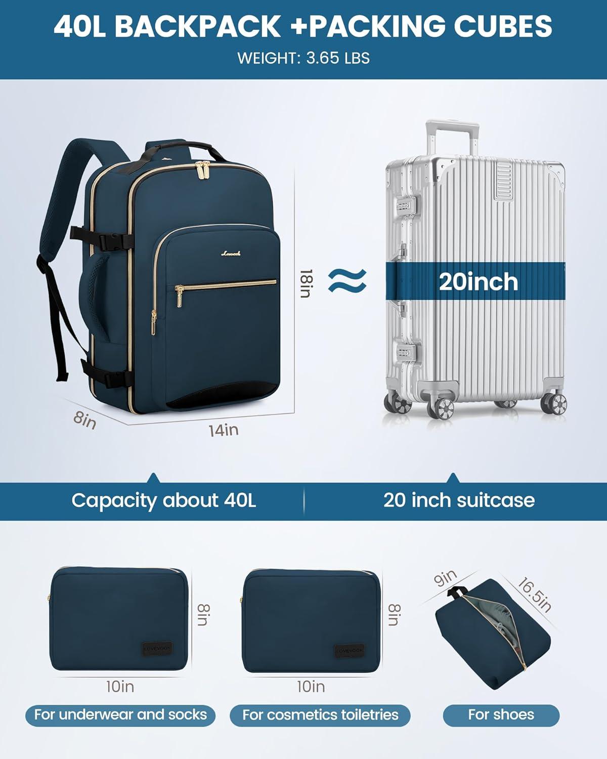 imageLOVEVOOK Travel Backpack for Women ampamp Men 40LAirline Approved Carry On Backpack Travel EssentialsTSA Carry on LuggageWaterproof Personal Item Travel BagSuitcase with 3 Packing CubesLight grayPinkDark Blue Greenblack