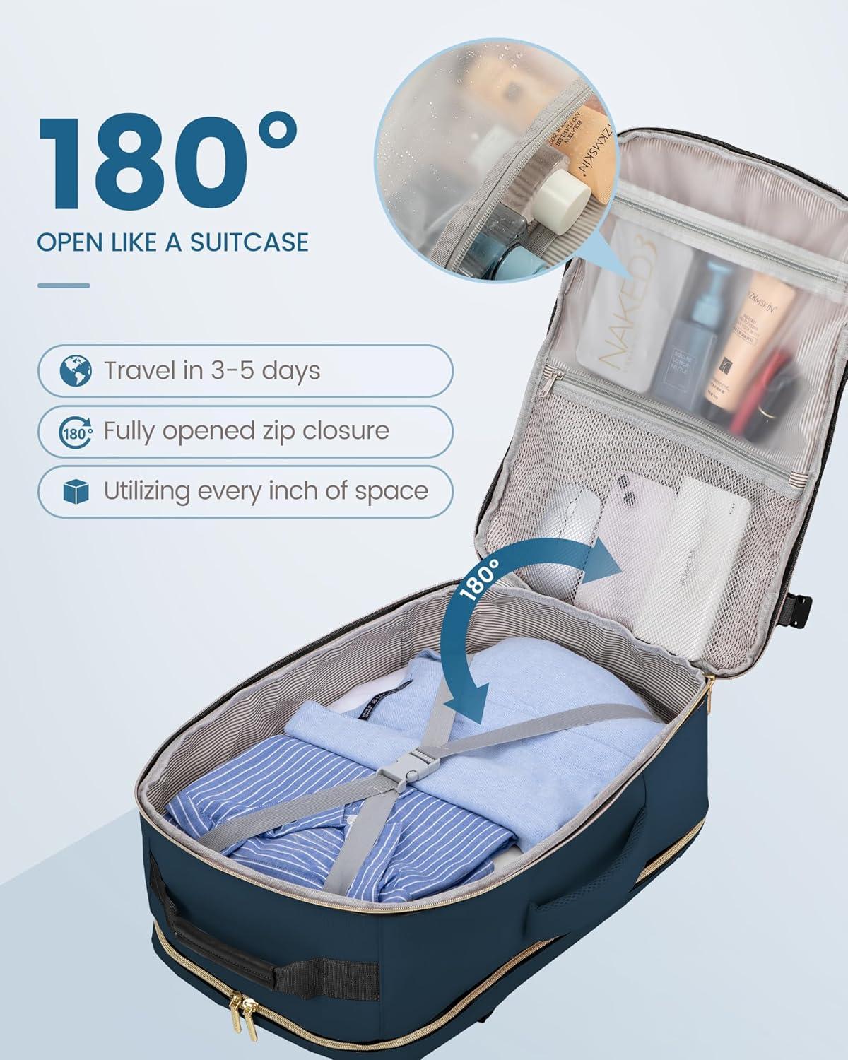 ✈【As Personal Item Airline Approved:】 The size of the carry on backpack is 18*14*8inch. Meets the maximum size allowed by most International Air Transport Association (IATA) flights, and can be placed in the overhead luggage compartment and under seat luggage for airlines, suitable for Spirit, Frontier, Easy Jet, Jet Blue, and other airlines. This travel backpack for women airline approved can be freely opened 90-180 degrees easily and quickly at the airport security check.