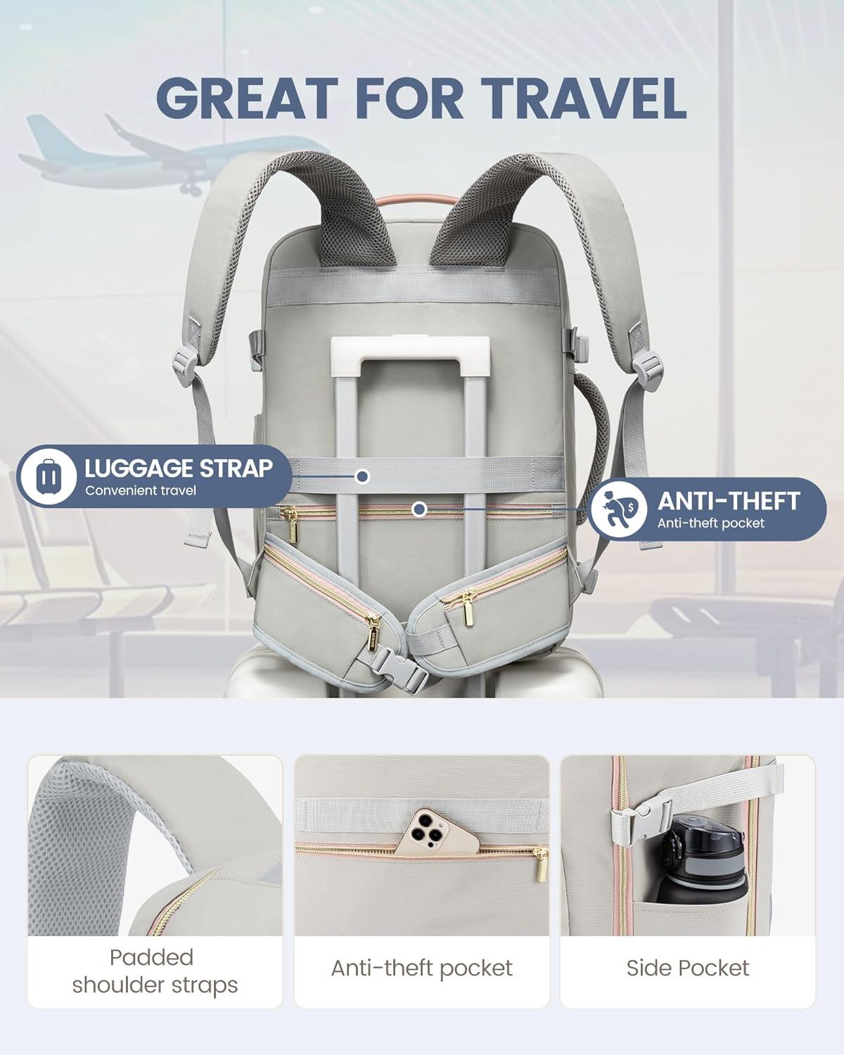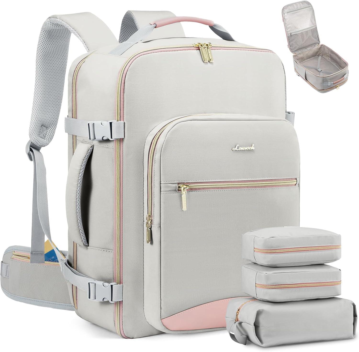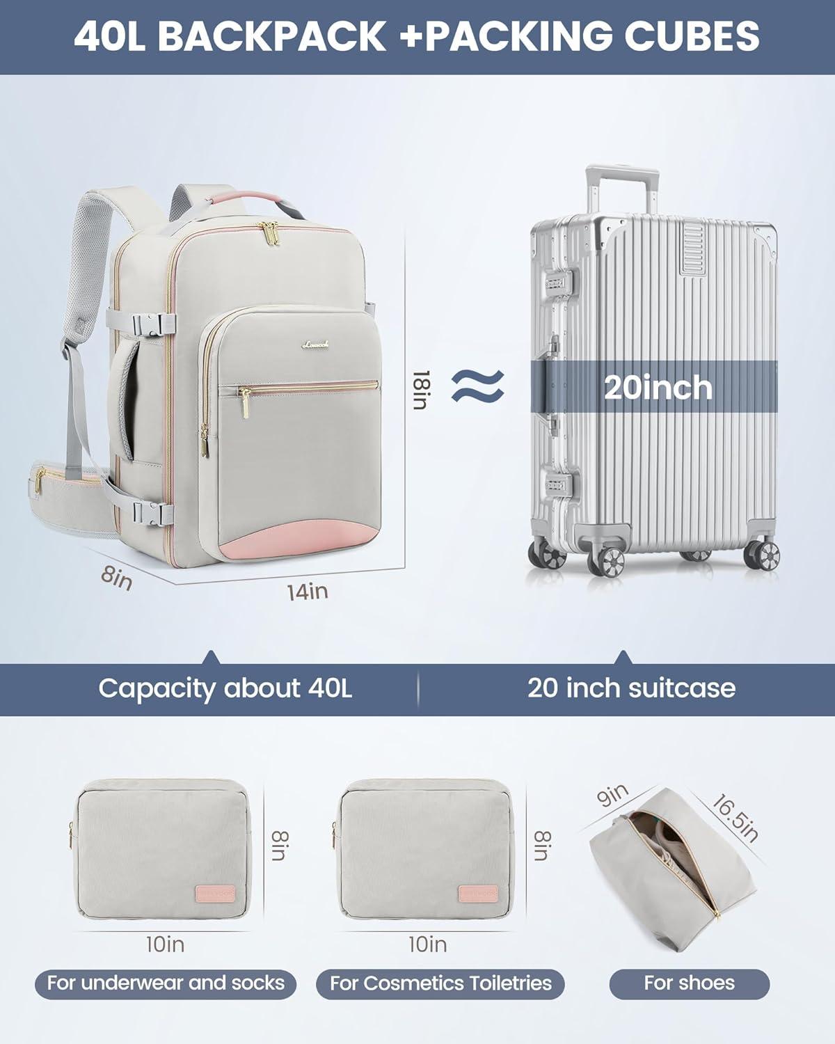 imageLOVEVOOK Travel Backpack for Women ampamp Men 40LAirline Approved Carry On Backpack Travel EssentialsTSA Carry on LuggageWaterproof Personal Item Travel BagSuitcase with 3 Packing CubesLight grayPinkBeigeblack
