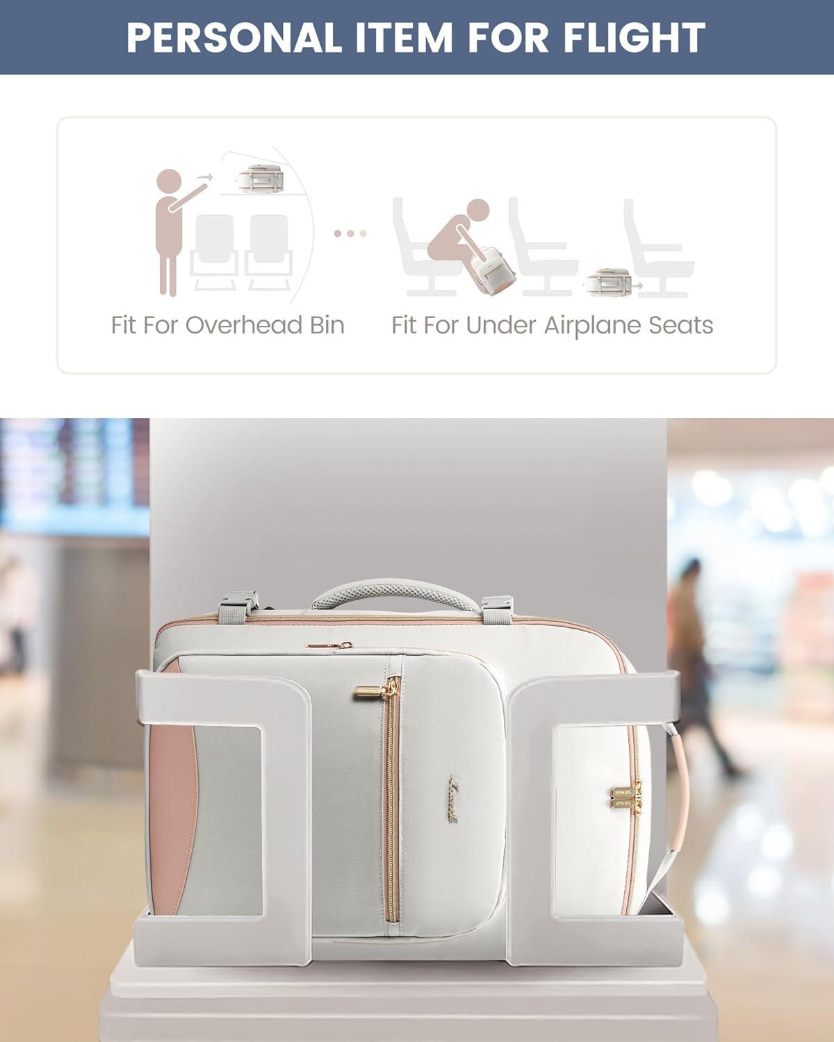 LOVEVOOK Travel Backpack for Women & Men 40L,Airline Approved Carry On Backpack Travel Essentials,TSA Carry on Luggage,Waterproof Personal Item Travel Bag,Suitcase with 3 Packing Cubes,Light gray-Pink(Beige-black)