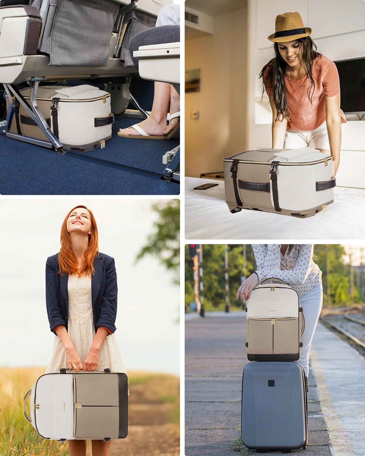imageLOVEVOOK Travel Backpack for Women TSA Carry On Backpack Flight Approved Luggage 40L Water Resistant Personal Item Daypack Large Weekender Bag fit 17 inch Laptop with 3 Cubes BeigeblackbrownBeigeblackbrown
