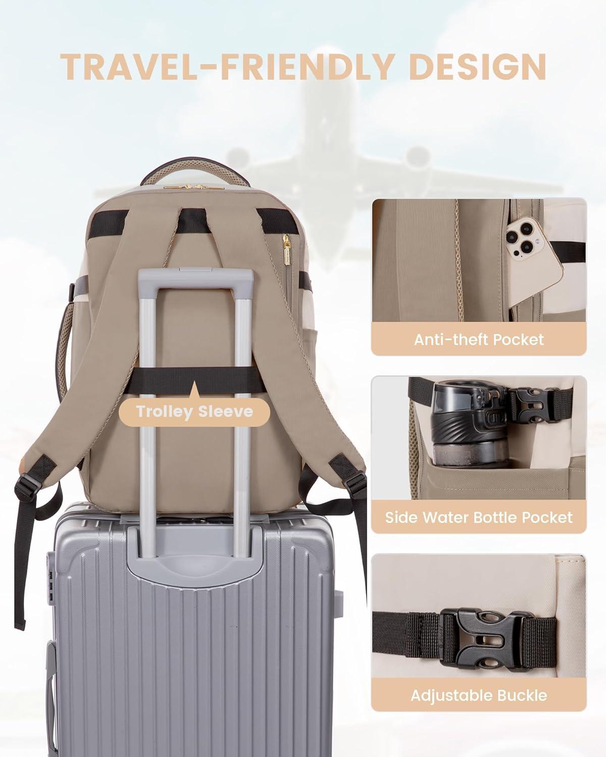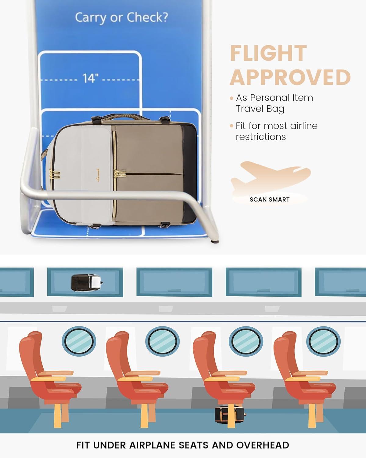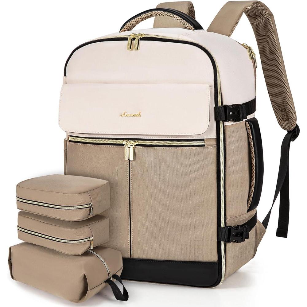 LOVEVOOK Travel Backpack for Women, TSA Carry On Backpack Flight Approved Luggage, 40L Water Resistant Personal Item Daypack Large Weekender Bag fit 17 inch Laptop with 3 Cubes, Beige-black-brown(Beige-black-brown)