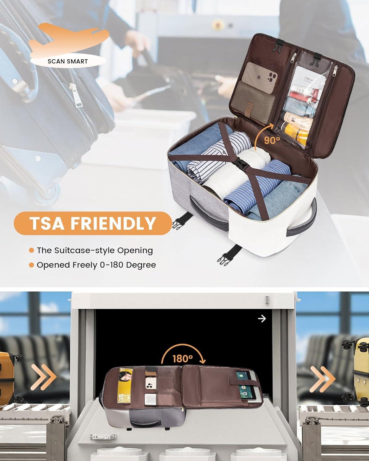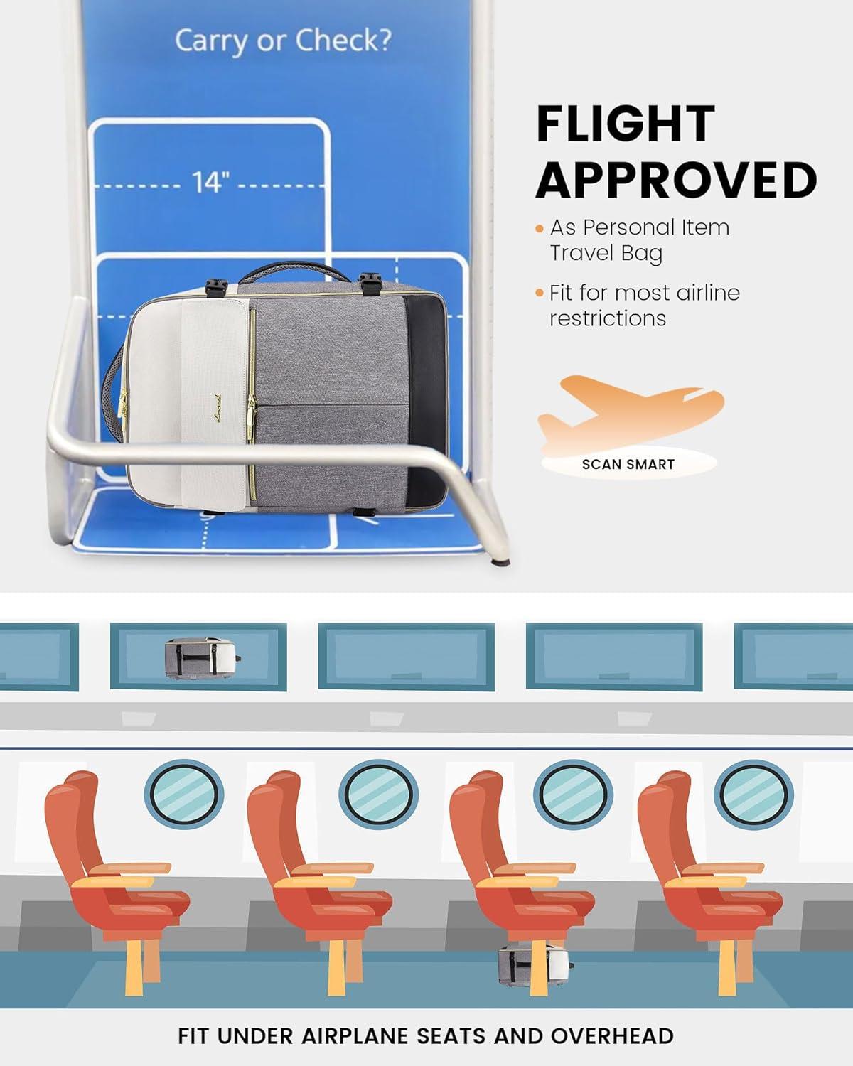Travel Backpack Airline Approved: this carry on backpack meets most airline regulations, making it a great option for traveling by air. The suitcage backpack is TSA friendly, the laptop compartment on the back can be opened 180 degrees, meaning you can easily pass through security checks and carry it as a personal item backpack on your flight. What's more, the backpack is designed to fit comfortably under airplane seats and in overhead compartments, allowing you to travel worry-free.