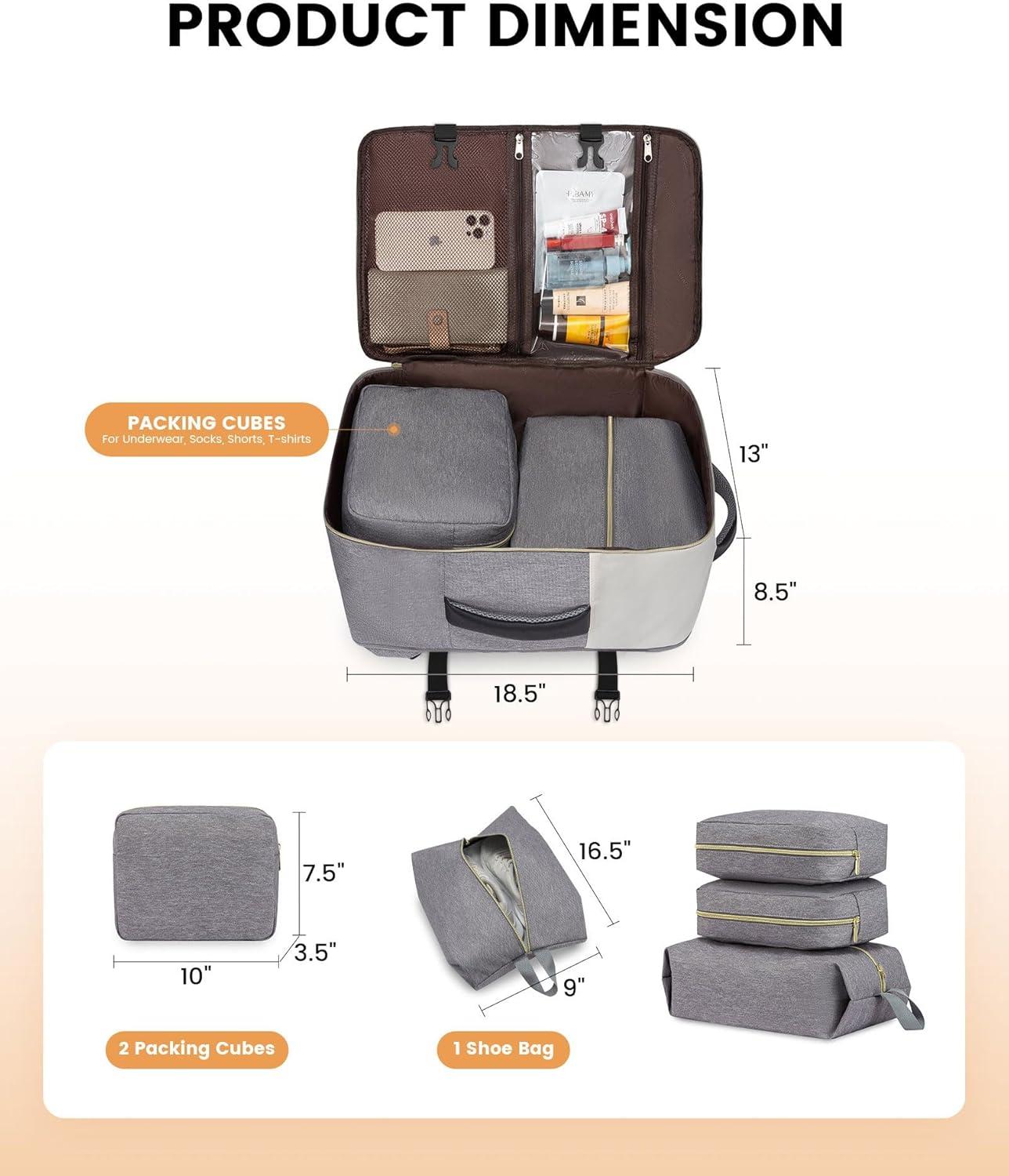 imageLOVEVOOK Travel Backpack for Women TSA Carry On Backpack Flight Approved Luggage 40L Water Resistant Personal Item Daypack Large Weekender Bag fit 17 inch Laptop with 3 Cubes BeigeblackbrownBeige Grey