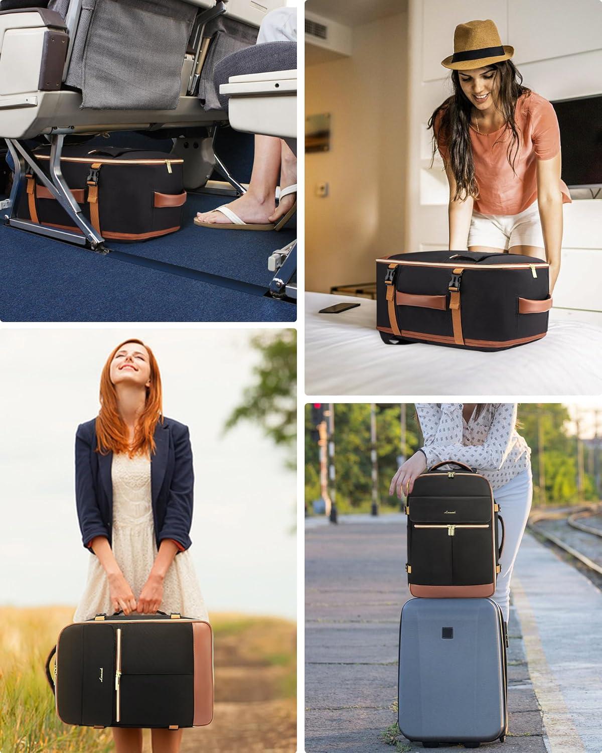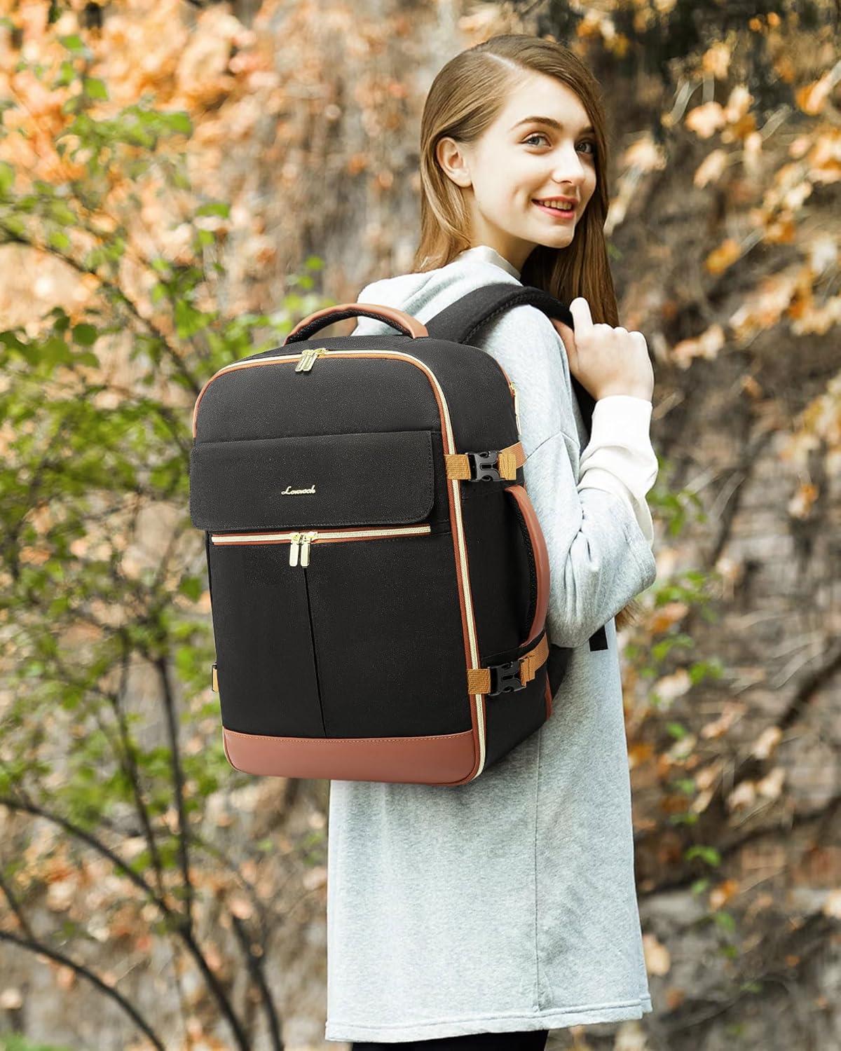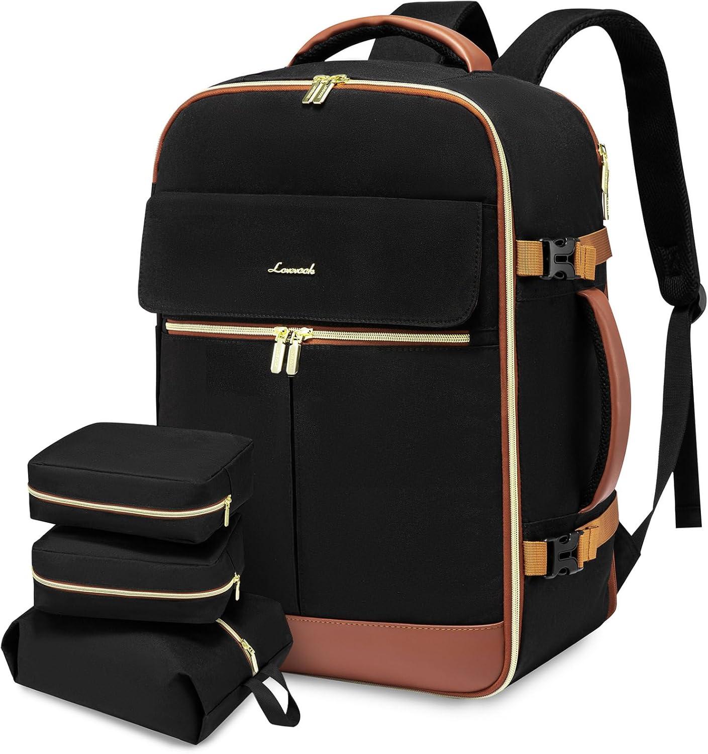 LOVEVOOK Travel Backpack for Women, TSA Carry On Backpack Flight Approved Luggage, 40L Water Resistant Personal Item Daypack Large Weekender Bag fit 17 inch Laptop with 3 Cubes, Beige-black-brown(Black)