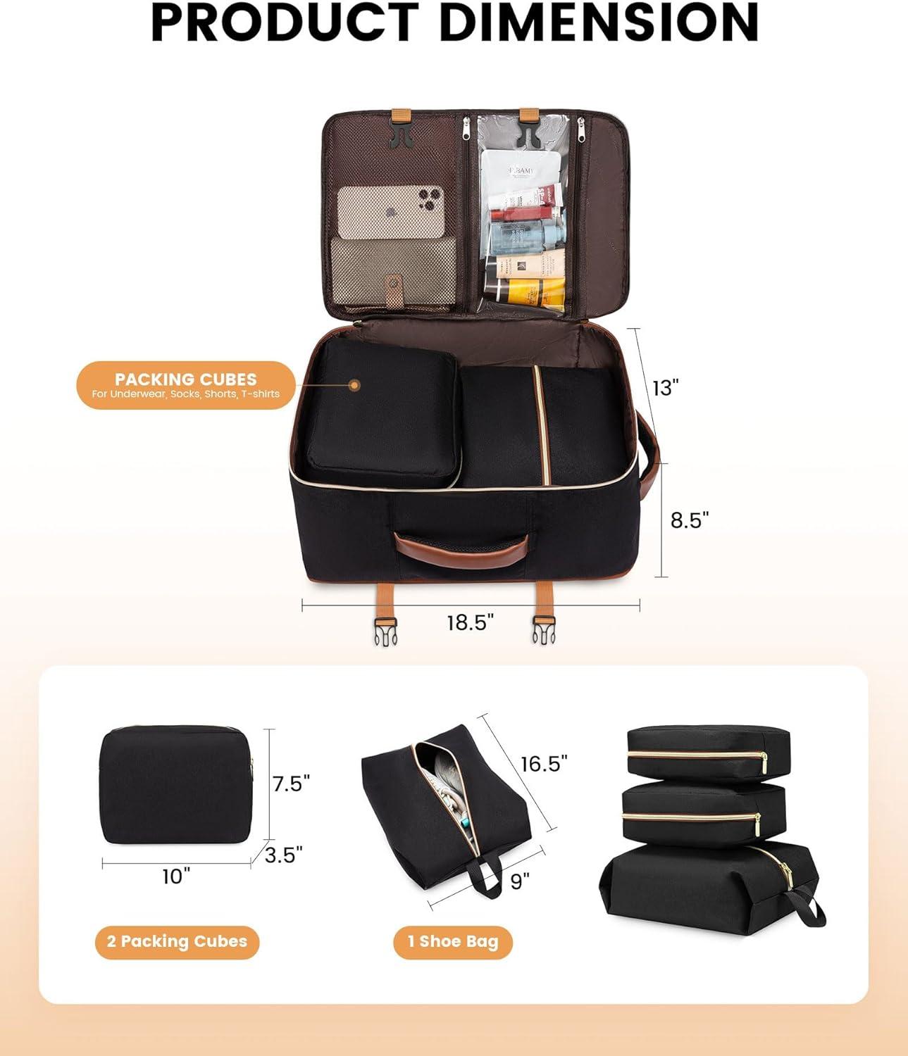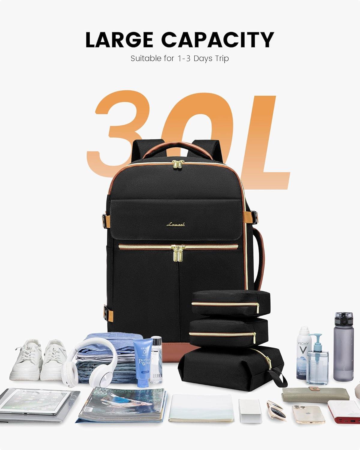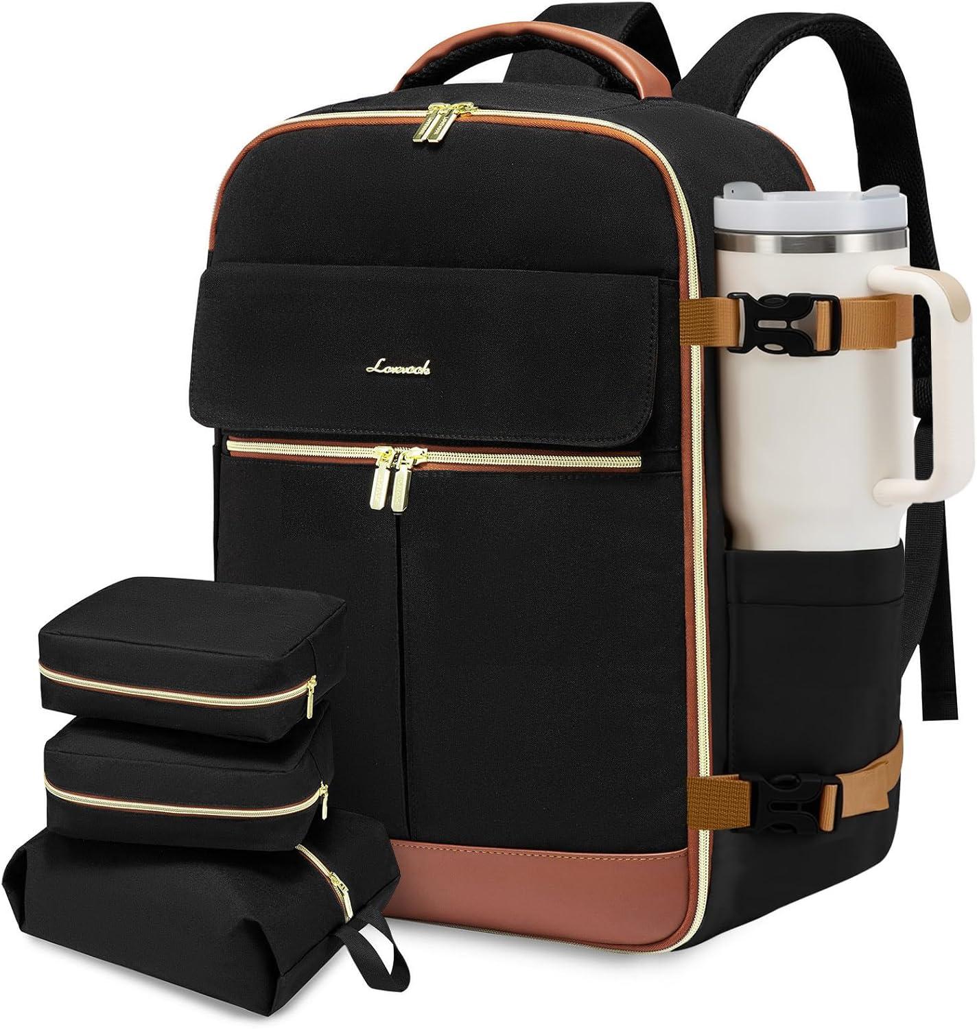 imageLOVEVOOK Travel Backpack for Women TSA Carry On Backpack Flight Approved Luggage 40L Water Resistant Personal Item Daypack Large Weekender Bag fit 17 inch Laptop with 3 Cubes BeigeblackbrownBlack