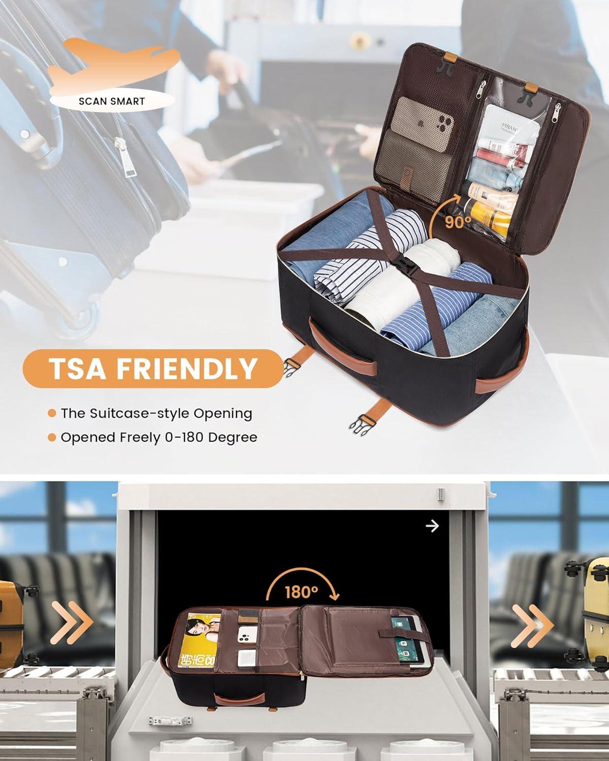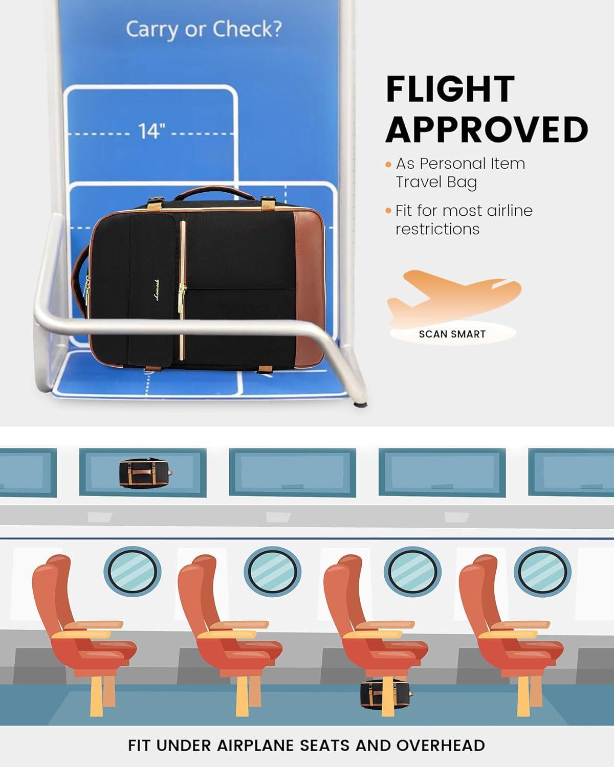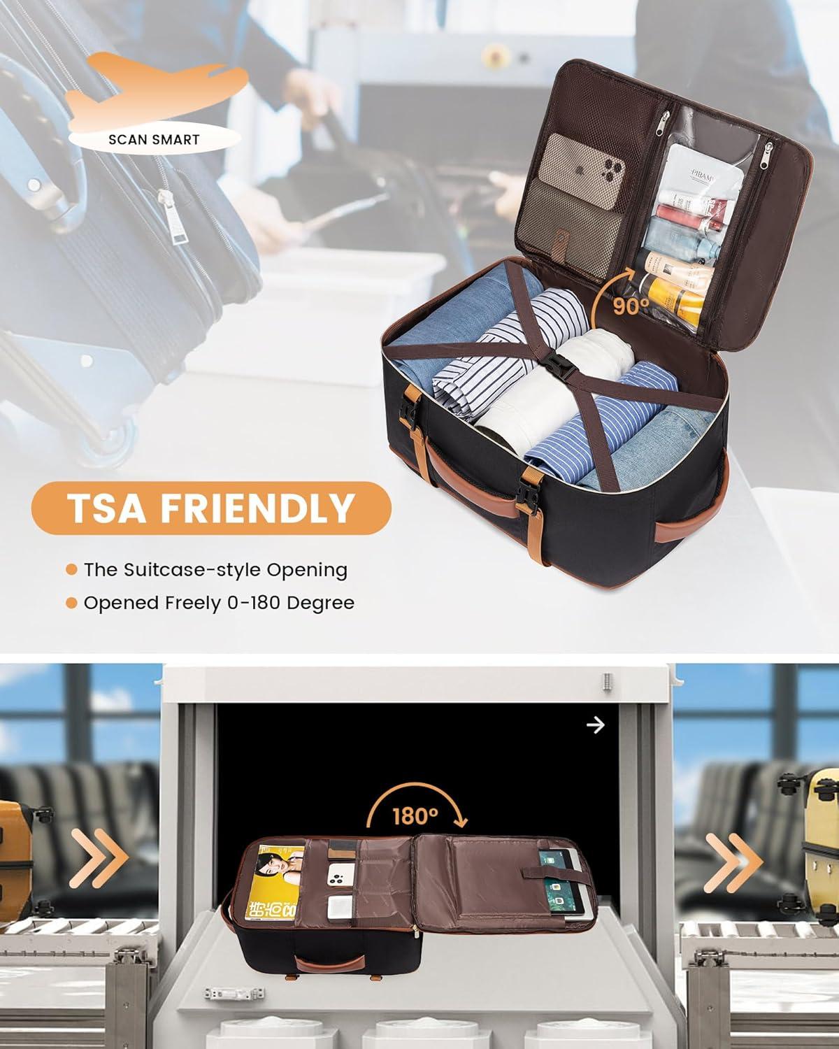 Travel Backpack Airline Approved: this carry on backpack meets most airline regulations, making it a great option for traveling by air. The suitcage backpack is TSA friendly, the laptop compartment on the back can be opened 180 degrees, meaning you can easily pass through security checks and carry it as a personal item backpack on your flight. What's more, the backpack is designed to fit comfortably under airplane seats and in overhead compartments, allowing you to travel worry-free.