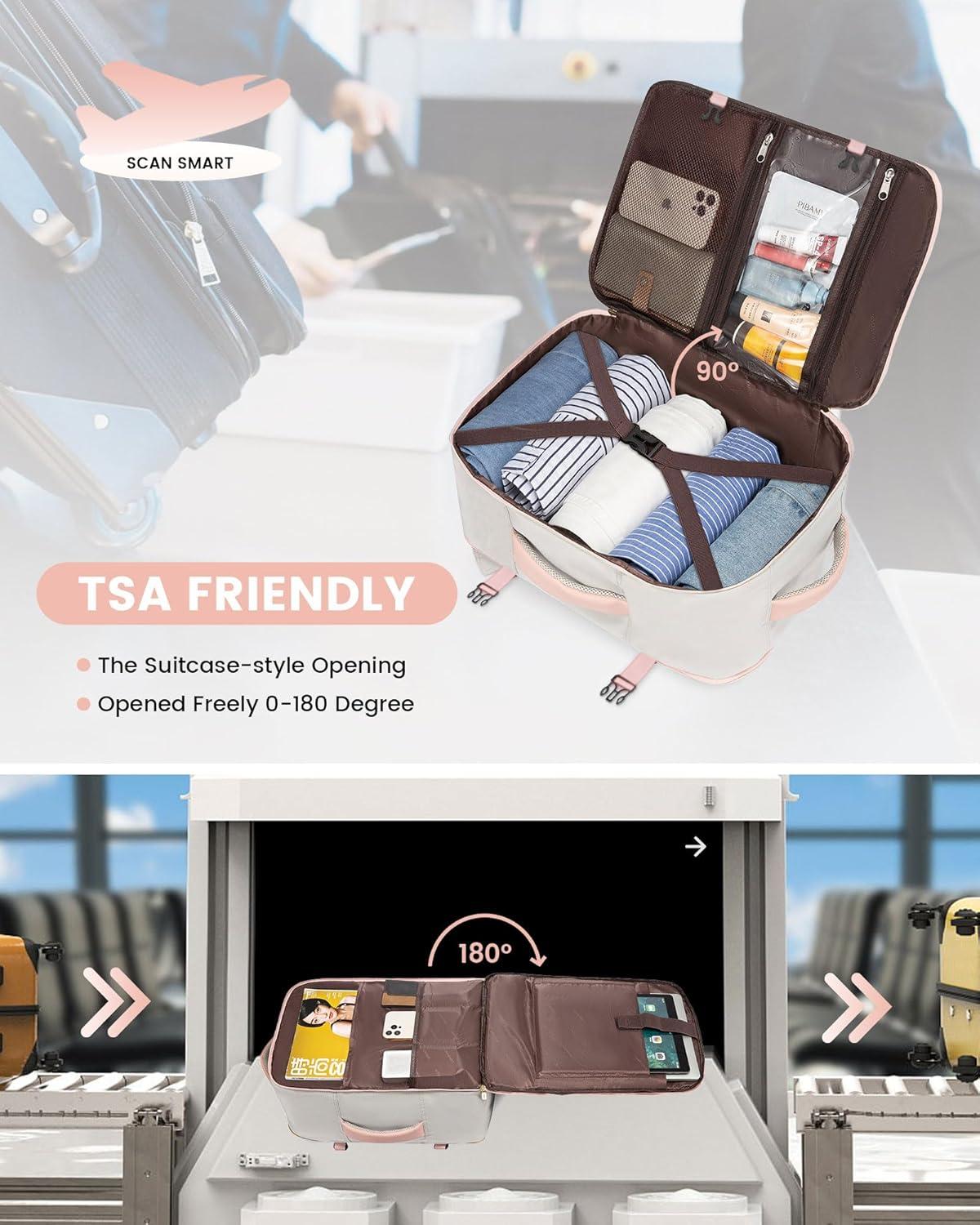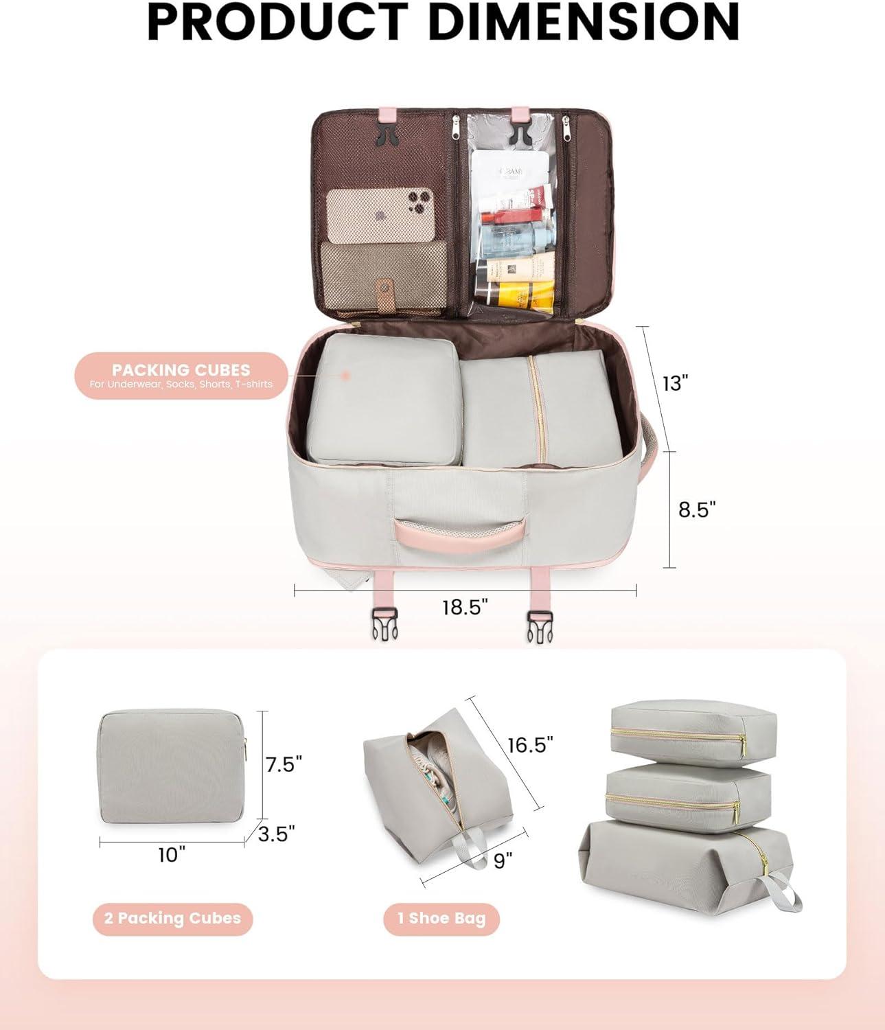 imageLOVEVOOK Travel Backpack for Women TSA Carry On Backpack Flight Approved Luggage 40L Water Resistant Personal Item Daypack Large Weekender Bag fit 17 inch Laptop with 3 Cubes BeigeblackbrownGrey Pink
