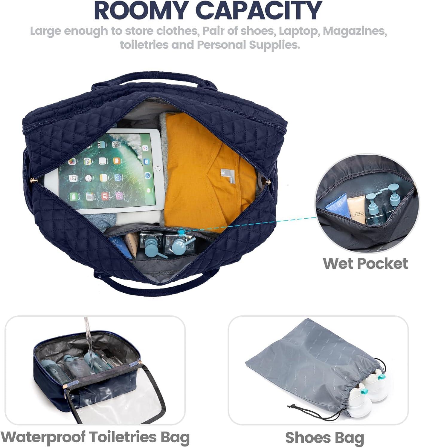 imageLOVEVOOK Travel Duffle Bag  Womens Weekender Carry On Overnight Laptop ampamp Gym Bag With ToiletryShoe Pocket Hospital Labor BagNavy