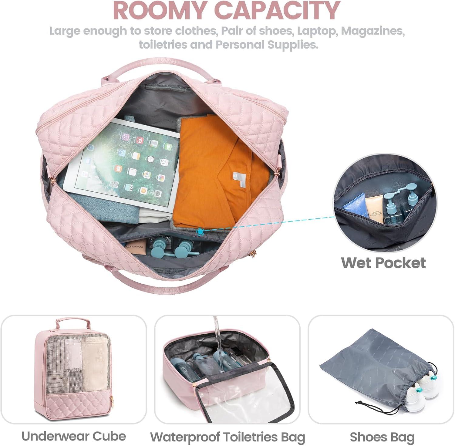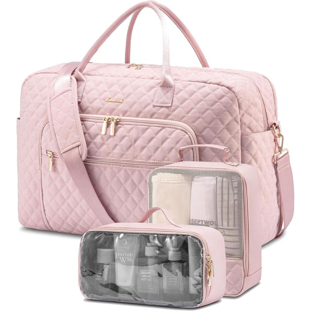 LOVEVOOK Travel Duffle Bag – Women’s Weekender Carry On Overnight Laptop & Gym Bag With Toiletry/Shoe Pocket, Hospital Labor Bag(Z-4pcs-Pink)