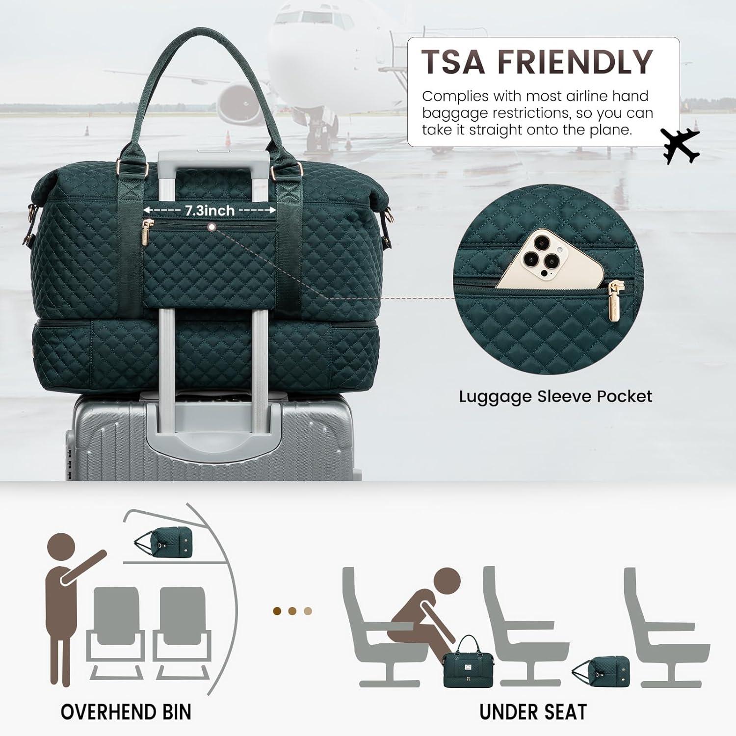 LOVEVOOK Travel Duffle Bag,Weekender Bags for Women with Shoe Compartment,Carry on Overnight Bag with Toiletry Bag,Gym Duffel Bag with Wet Pocket, Hospital Bags for Labor and Delivery(A-Dark Green-a)