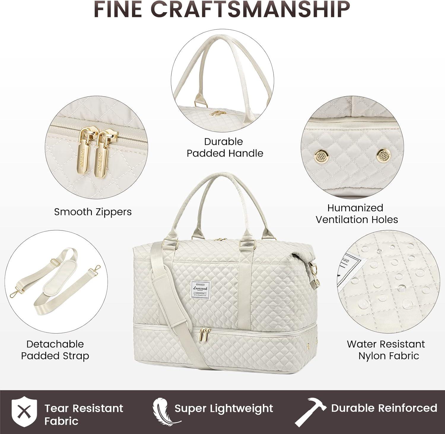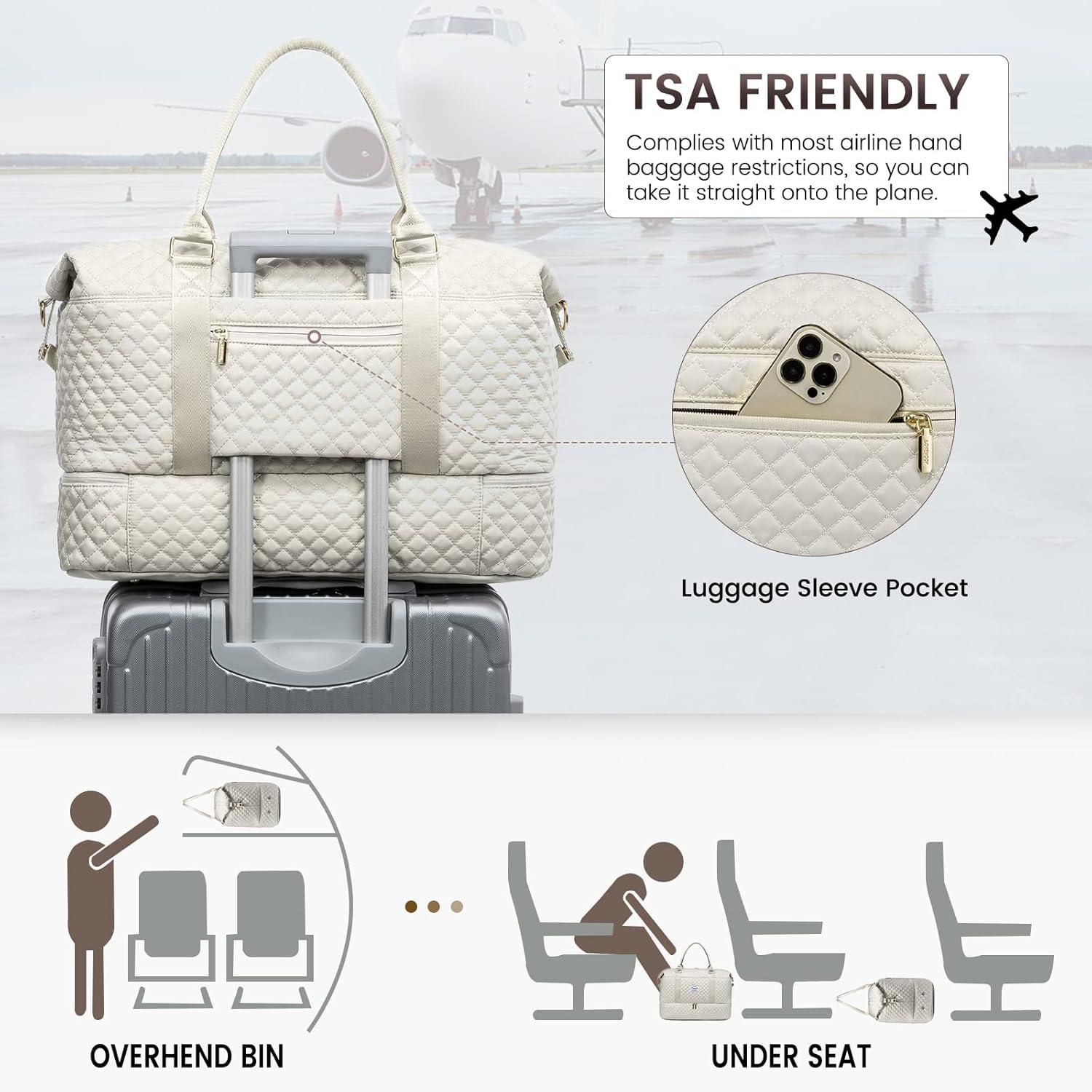 LOVEVOOK Travel Duffle Bag,Weekender Bags for Women with Shoe Compartment,Carry on Overnight Bag with Toiletry Bag,Gym Duffel Bag with Wet Pocket, Hospital Bags for Labor and Delivery(Beige-L)