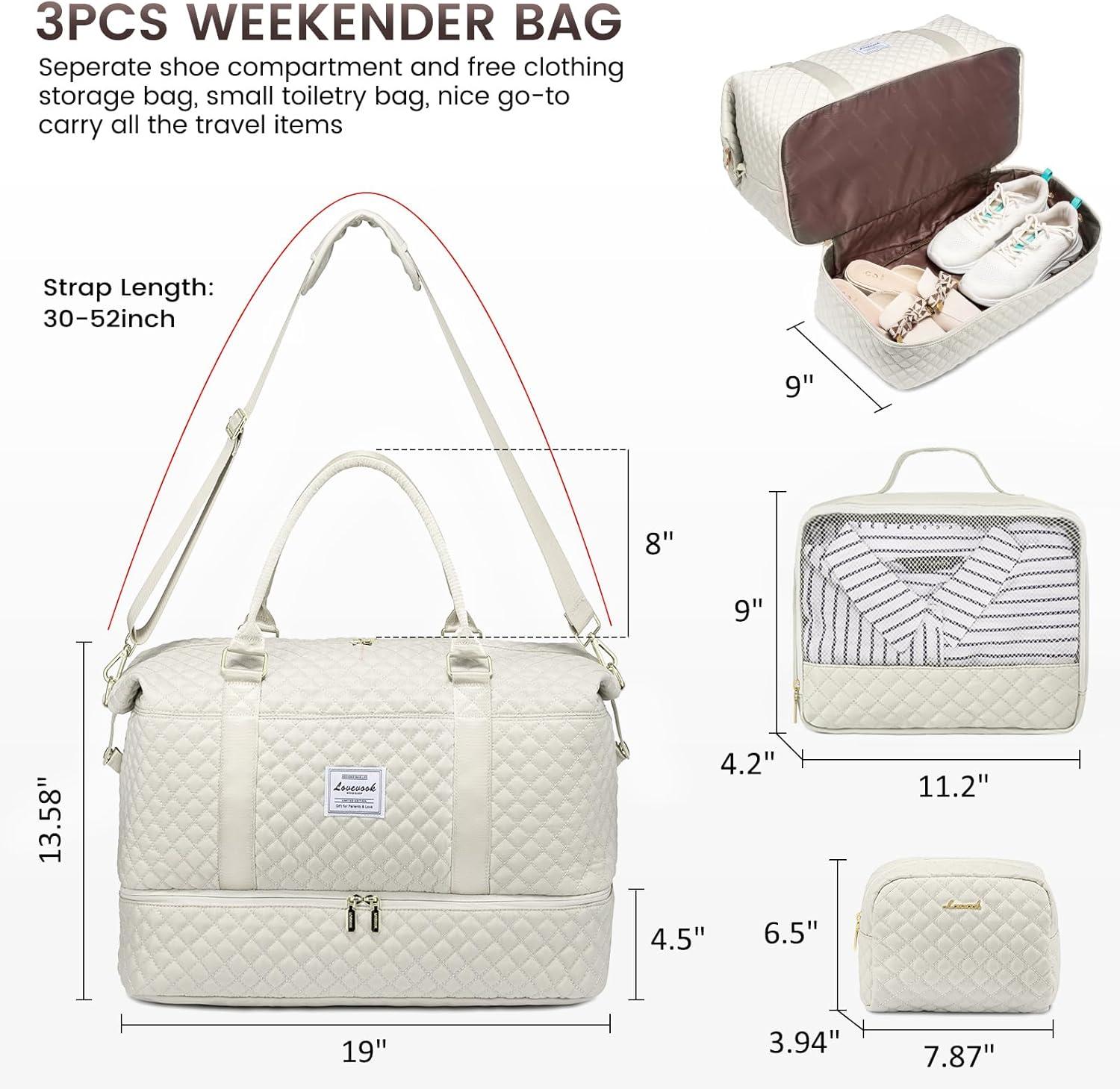 LOVEVOOK Travel Duffle Bag,Weekender Bags for Women with Shoe Compartment,Carry on Overnight Bag with Toiletry Bag,Gym Duffel Bag with Wet Pocket, Hospital Bags for Labor and Delivery(Beige-a-3pc)