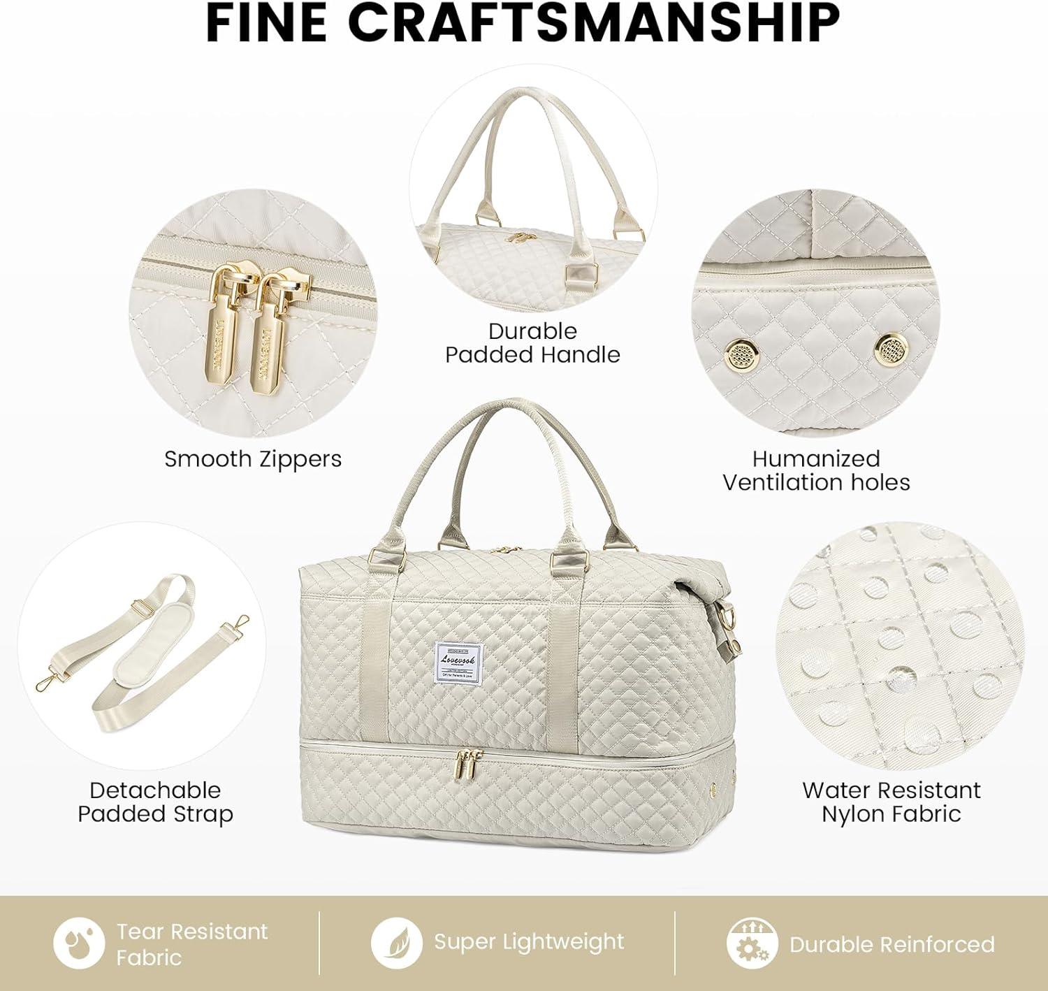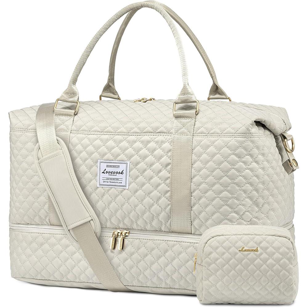 LOVEVOOK Travel Duffle Bag,Weekender Bags for Women with Shoe Compartment,Carry on Overnight Bag with Toiletry Bag,Gym Duffel Bag with Wet Pocket, Hospital Bags for Labor and Delivery(Beige-L)