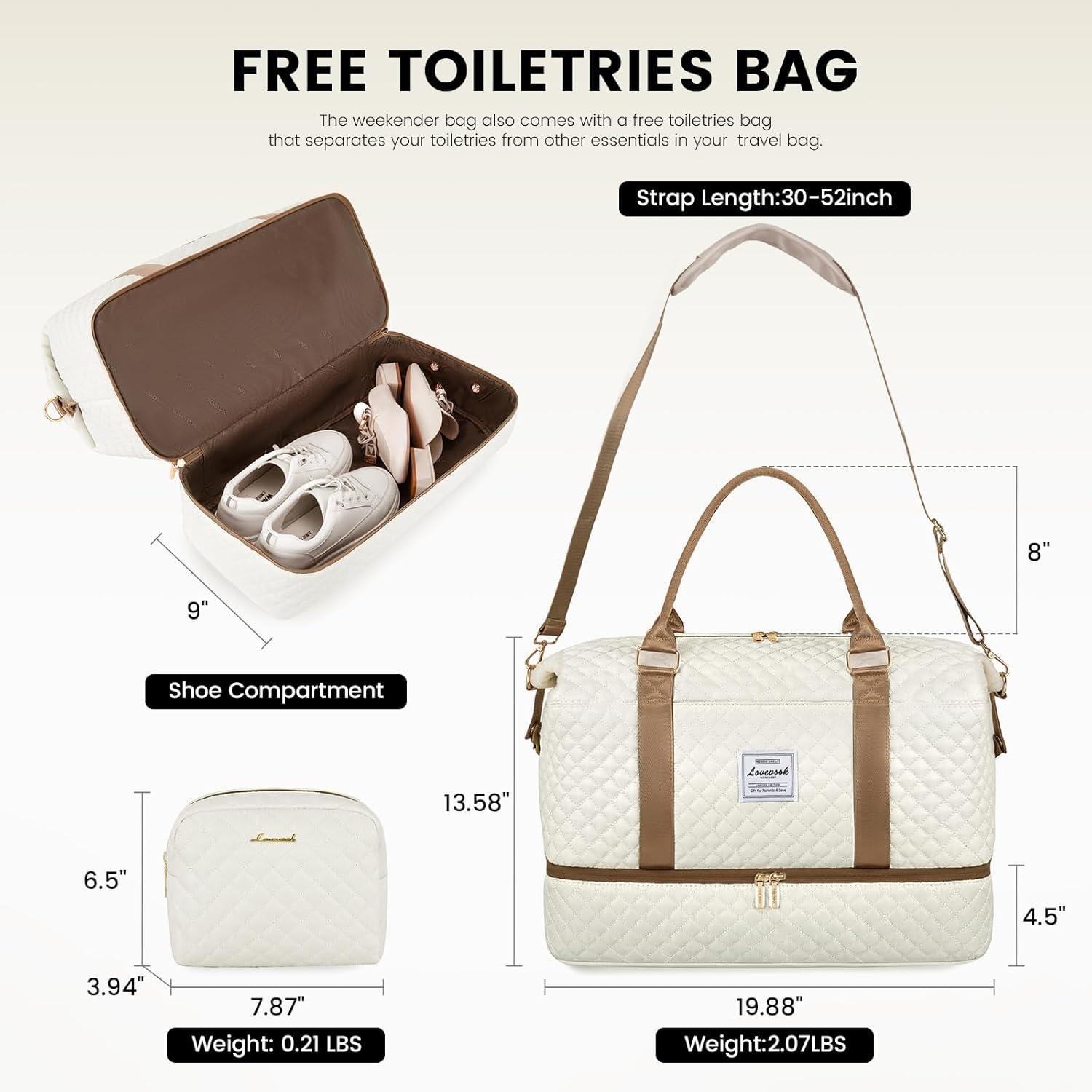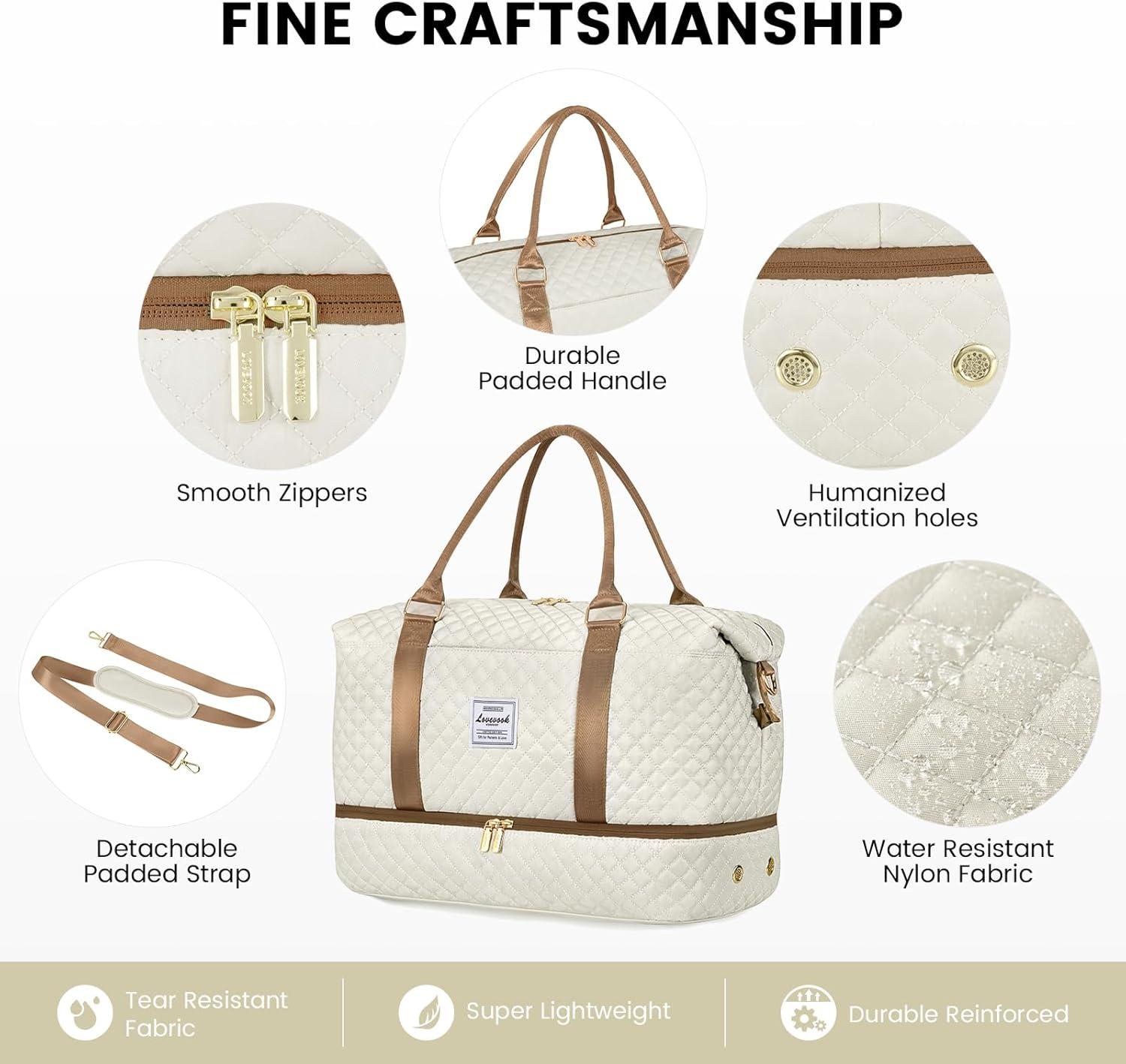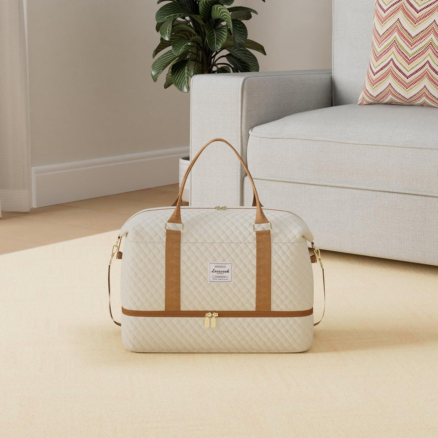 LOVEVOOK Travel Duffle Bag,Weekender Bags for Women with Shoe Compartment,Carry on Overnight Bag with Toiletry Bag,Gym Duffel Bag with Wet Pocket, Hospital Bags for Labor and Delivery(Beige-L)
