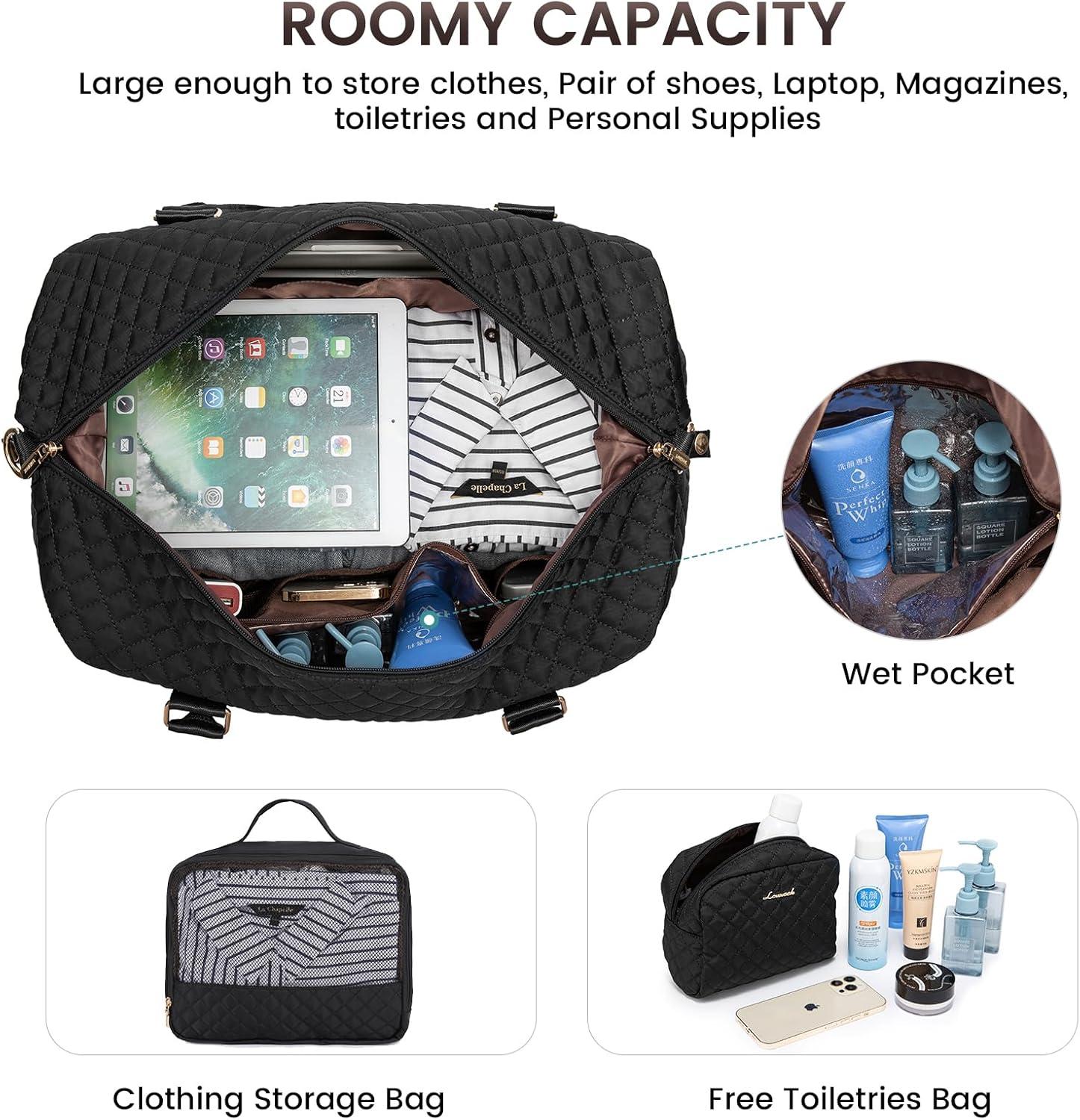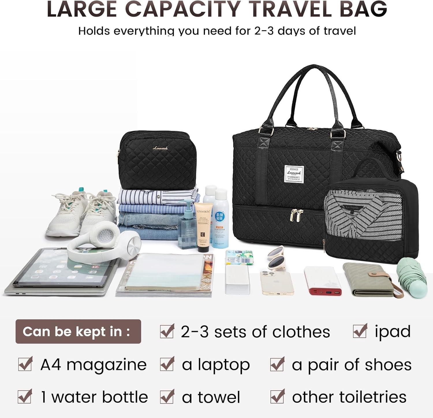 LOVEVOOK Travel Duffle Bag,Weekender Bags for Women with Shoe Compartment,Carry on Overnight Bag with Toiletry Bag,Gym Duffel Bag with Wet Pocket, Hospital Bags for Labor and Delivery(Black-L3)