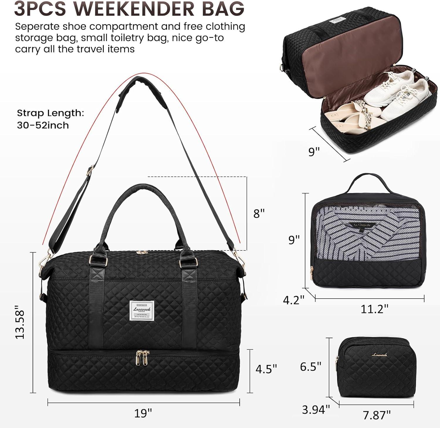 LOVEVOOK Travel Duffle Bag,Weekender Bags for Women with Shoe Compartment,Carry on Overnight Bag with Toiletry Bag,Gym Duffel Bag with Wet Pocket, Hospital Bags for Labor and Delivery(Black-b-3pc)