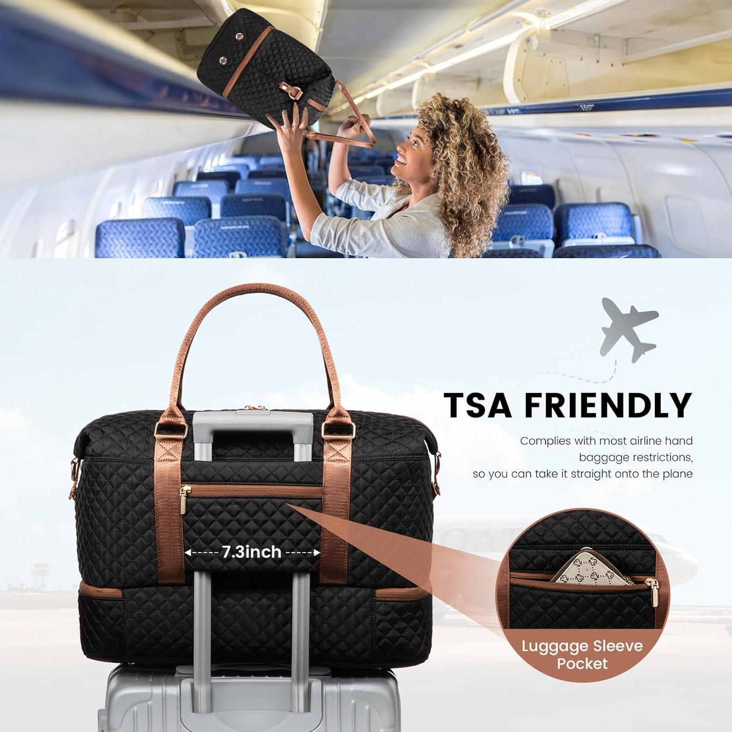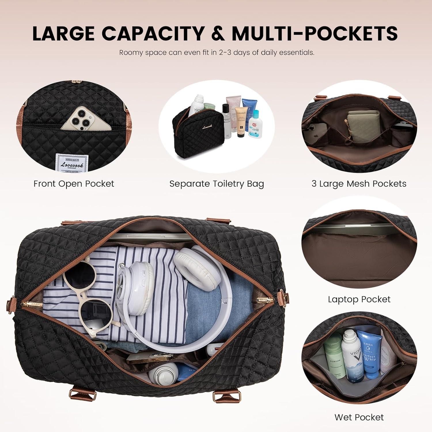 LOVEVOOK Travel Duffle Bag,Weekender Bags for Women with Shoe Compartment,Carry on Overnight Bag with Toiletry Bag,Gym Duffel Bag with Wet Pocket, Hospital Bags for Labor and Delivery(Black-L3)