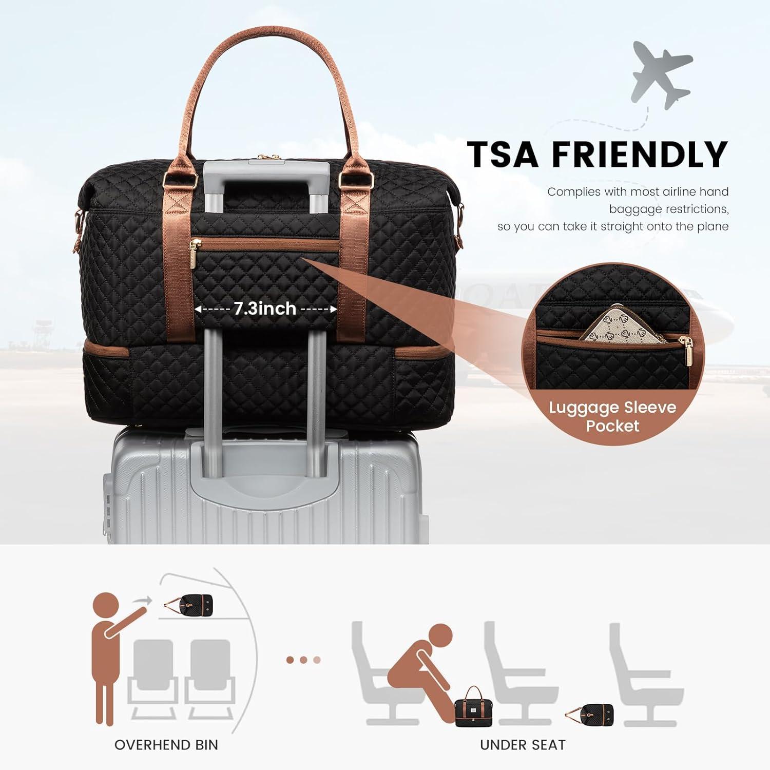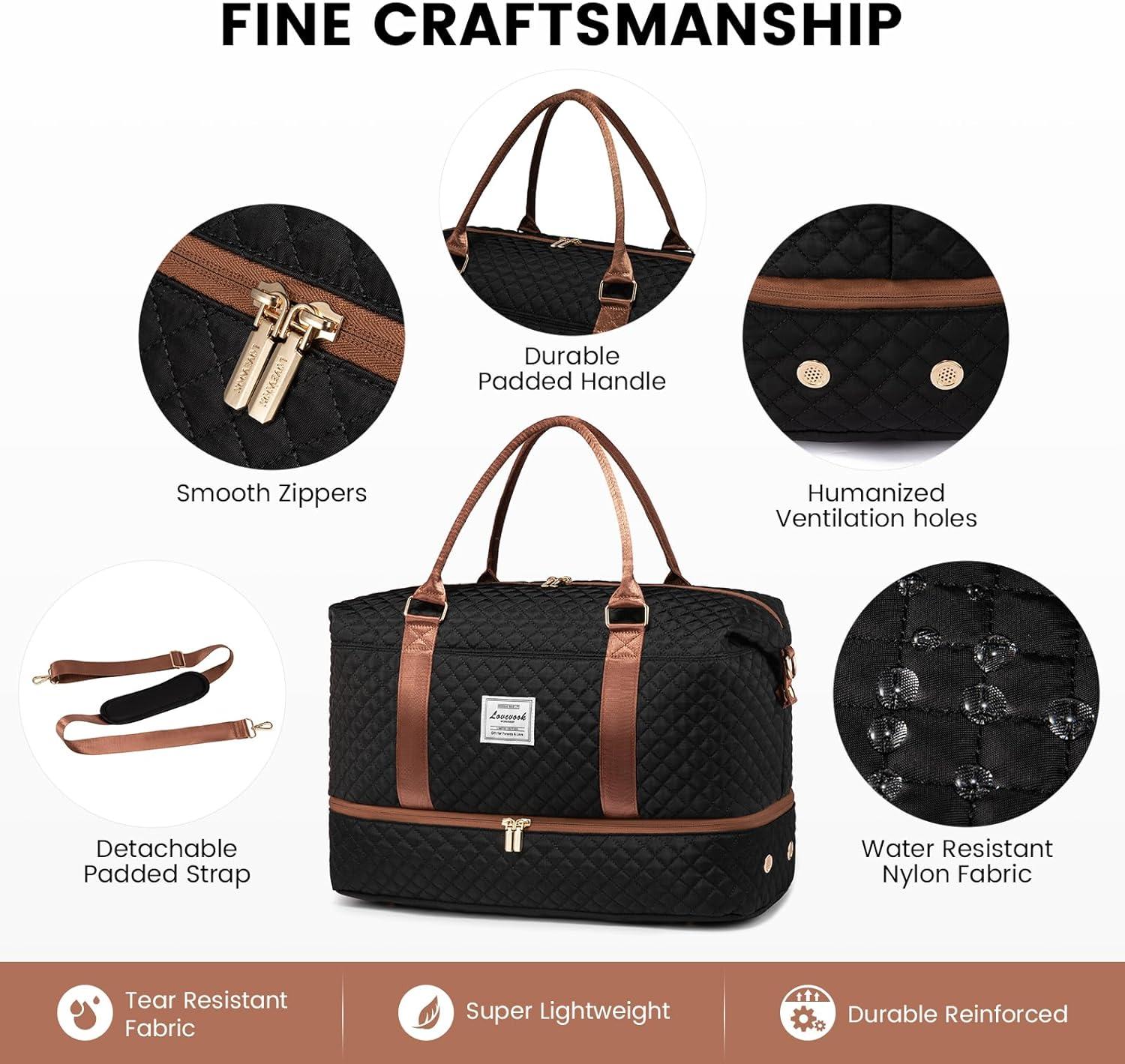 LOVEVOOK Travel Duffle Bag,Weekender Bags for Women with Shoe Compartment,Carry on Overnight Bag with Toiletry Bag,Gym Duffel Bag with Wet Pocket, Hospital Bags for Labor and Delivery(Black&Brown)