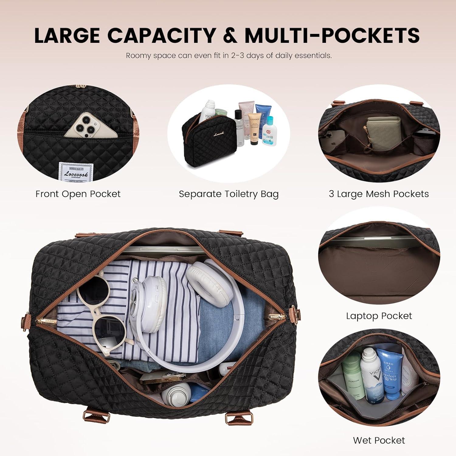 LOVEVOOK Travel Duffle Bag,Weekender Bags for Women with Shoe Compartment,Carry on Overnight Bag with Toiletry Bag,Gym Duffel Bag with Wet Pocket, Hospital Bags for Labor and Delivery(Black)