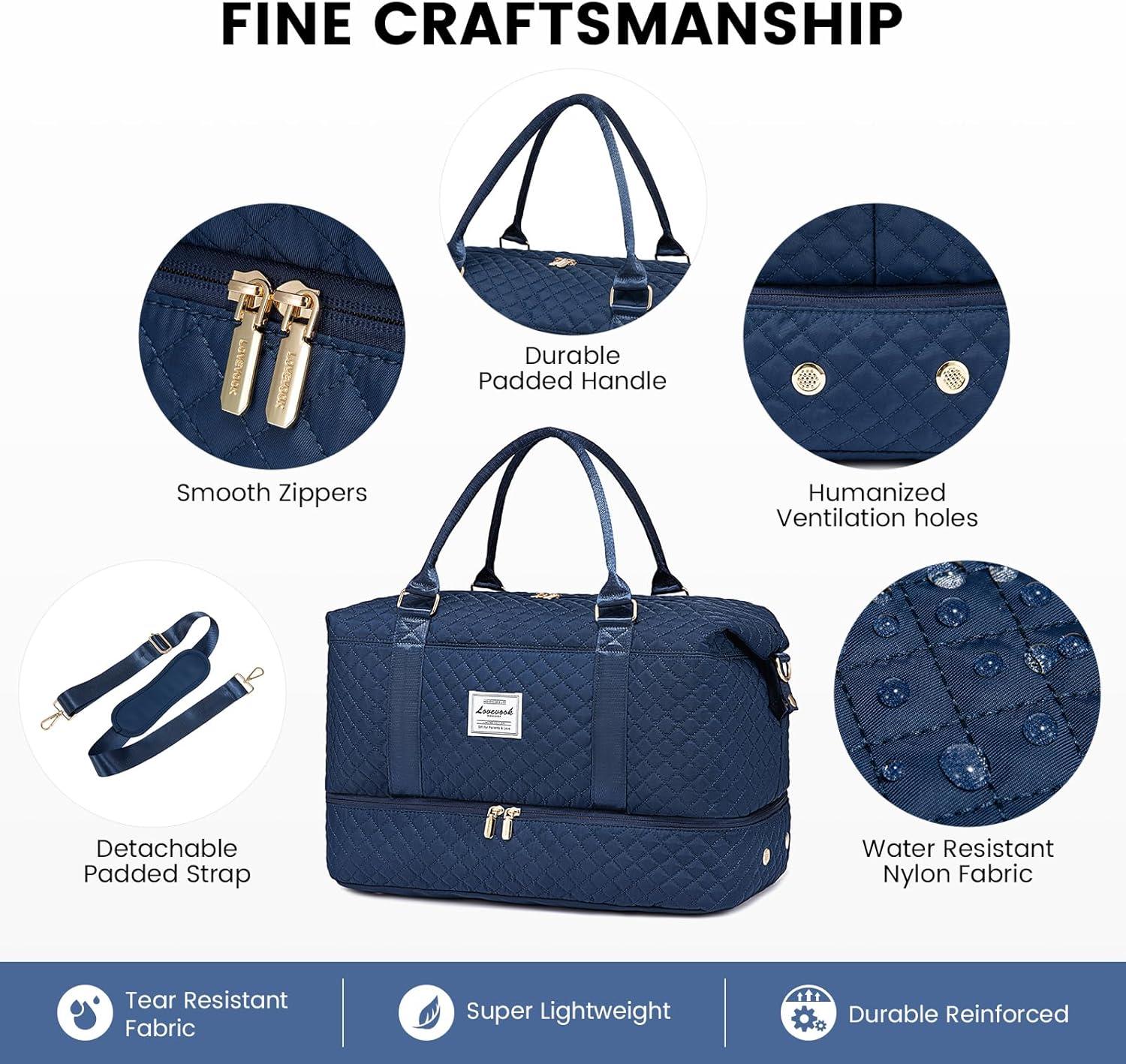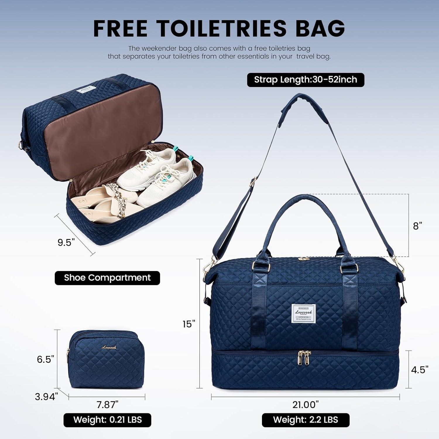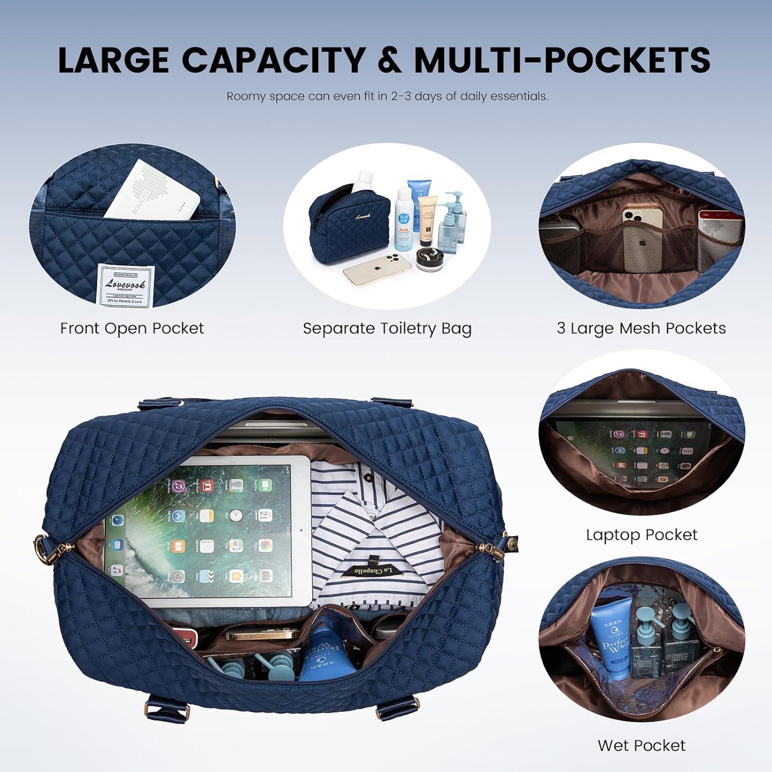 LOVEVOOK Travel Duffle Bag,Weekender Bags for Women with Shoe Compartment,Carry on Overnight Bag with Toiletry Bag,Gym Duffel Bag with Wet Pocket, Hospital Bags for Labor and Delivery(Blue-L)