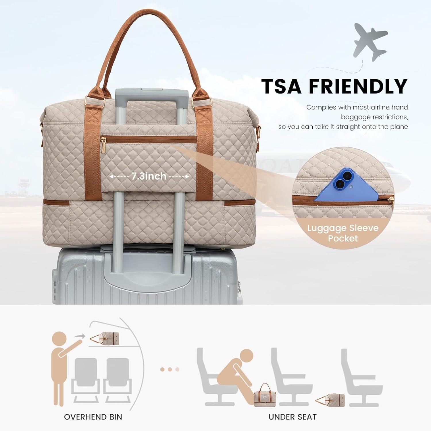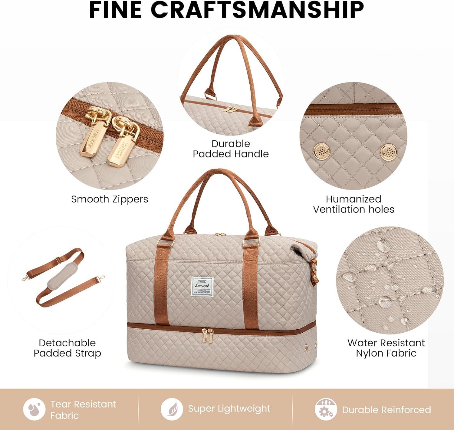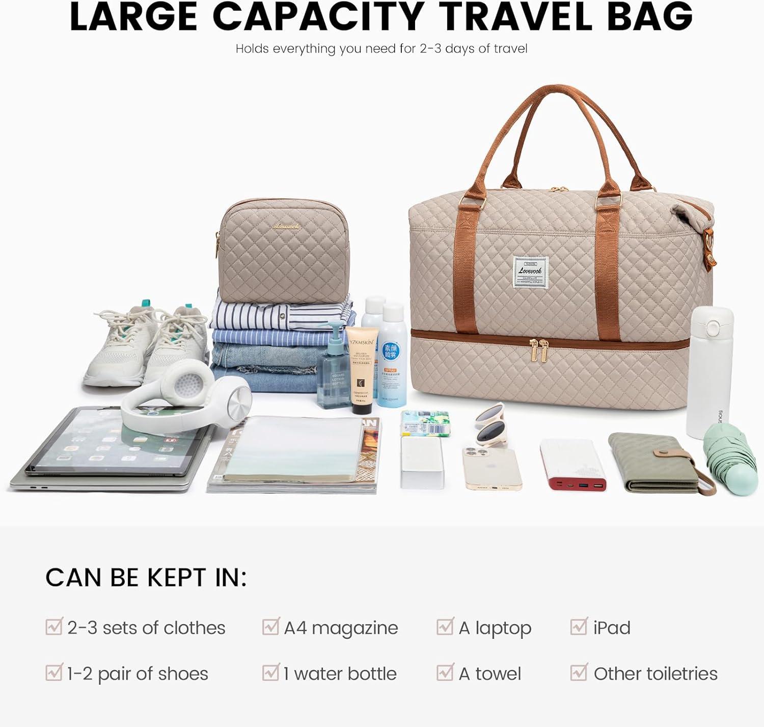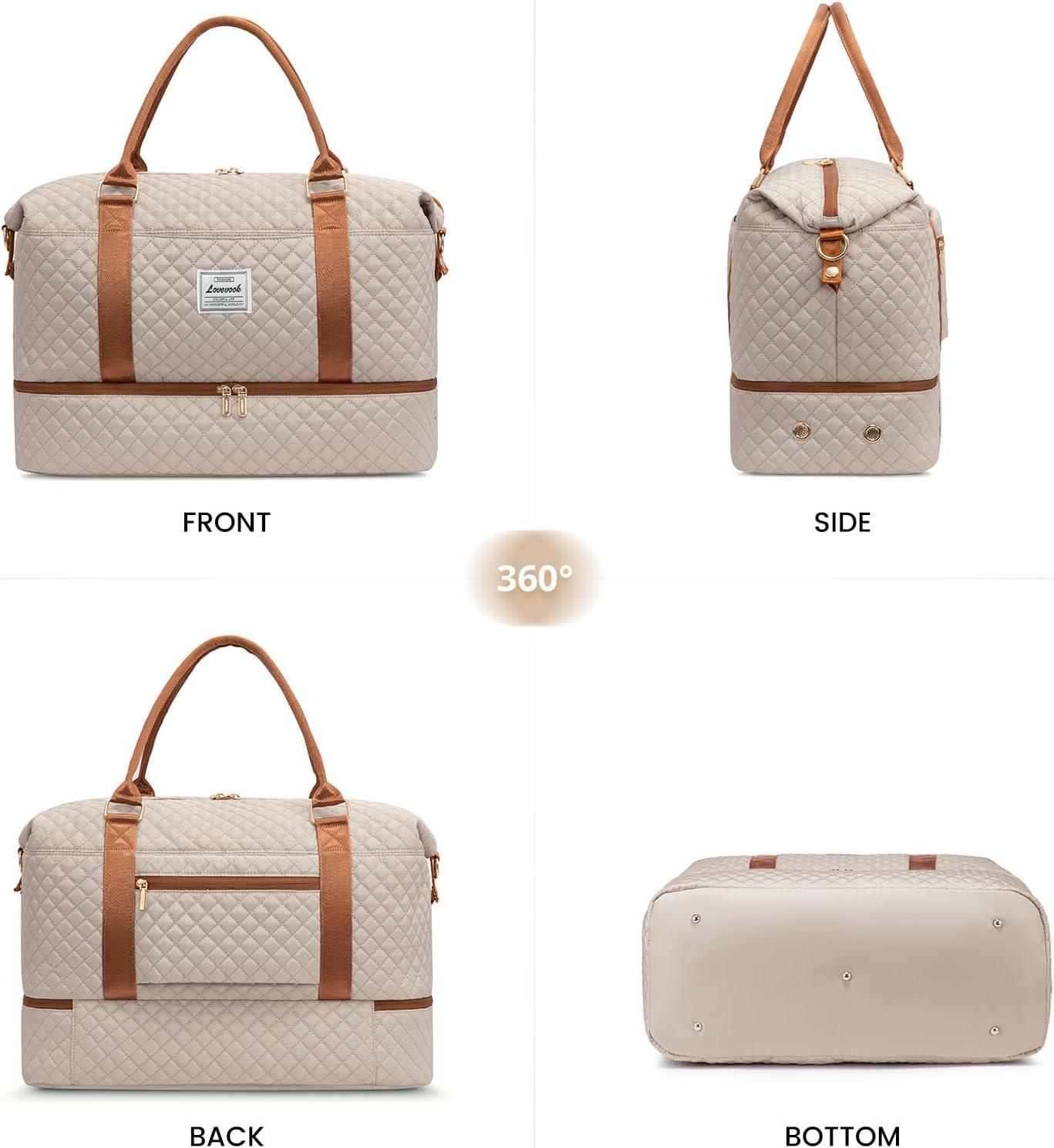 LOVEVOOK Travel Duffle Bag,Weekender Bags for Women with Shoe Compartment,Carry on Overnight Bag with Toiletry Bag,Gym Duffel Bag with Wet Pocket, Hospital Bags for Labor and Delivery(Dark Apricot&Brown)
