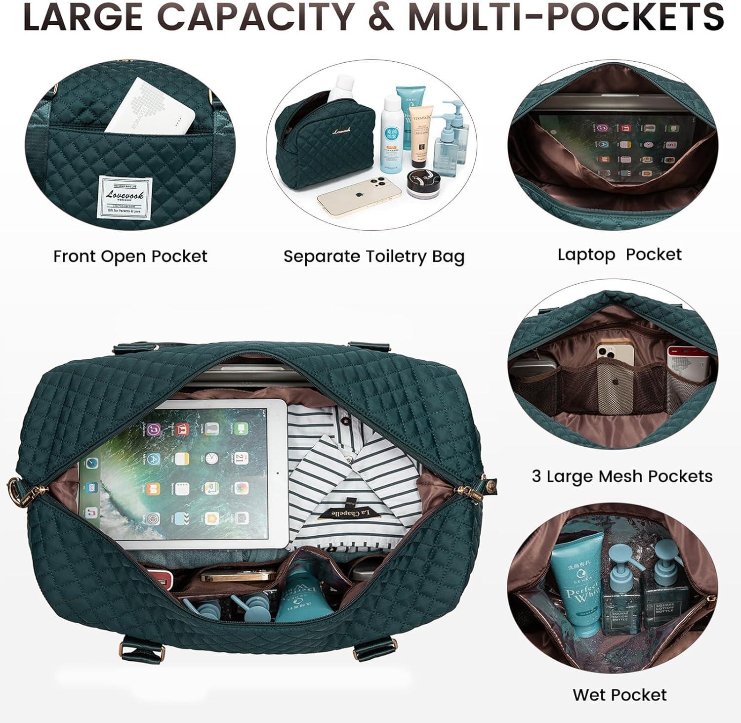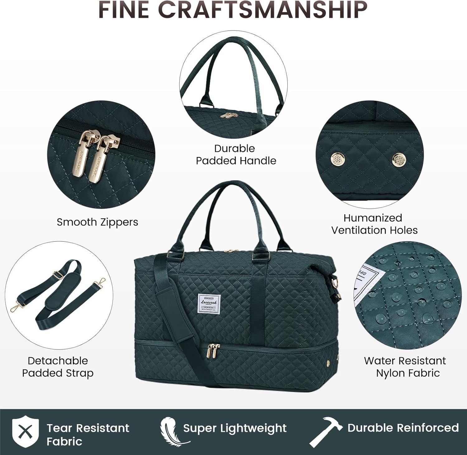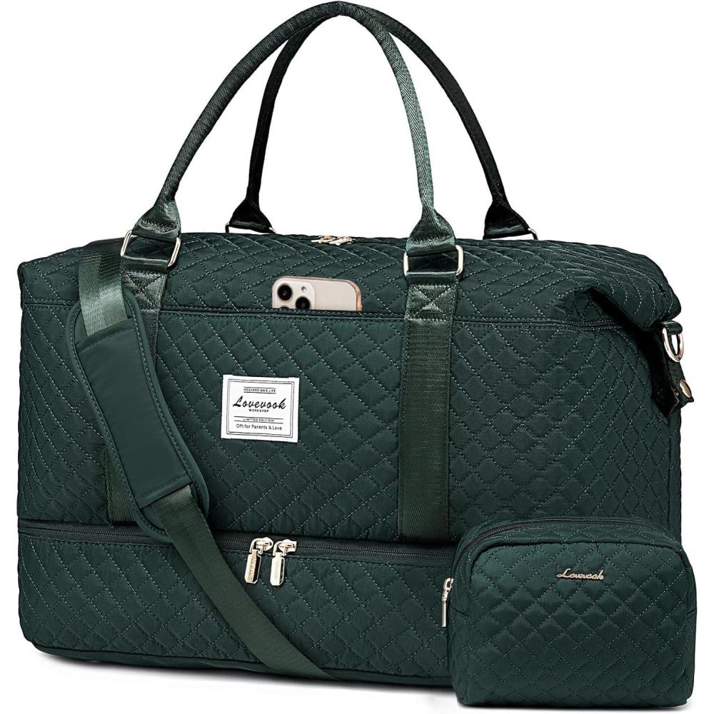 LOVEVOOK Travel Duffle Bag,Weekender Bags for Women with Shoe Compartment,Carry on Overnight Bag with Toiletry Bag,Gym Duffel Bag with Wet Pocket, Hospital Bags for Labor and Delivery(Dark Green-L)