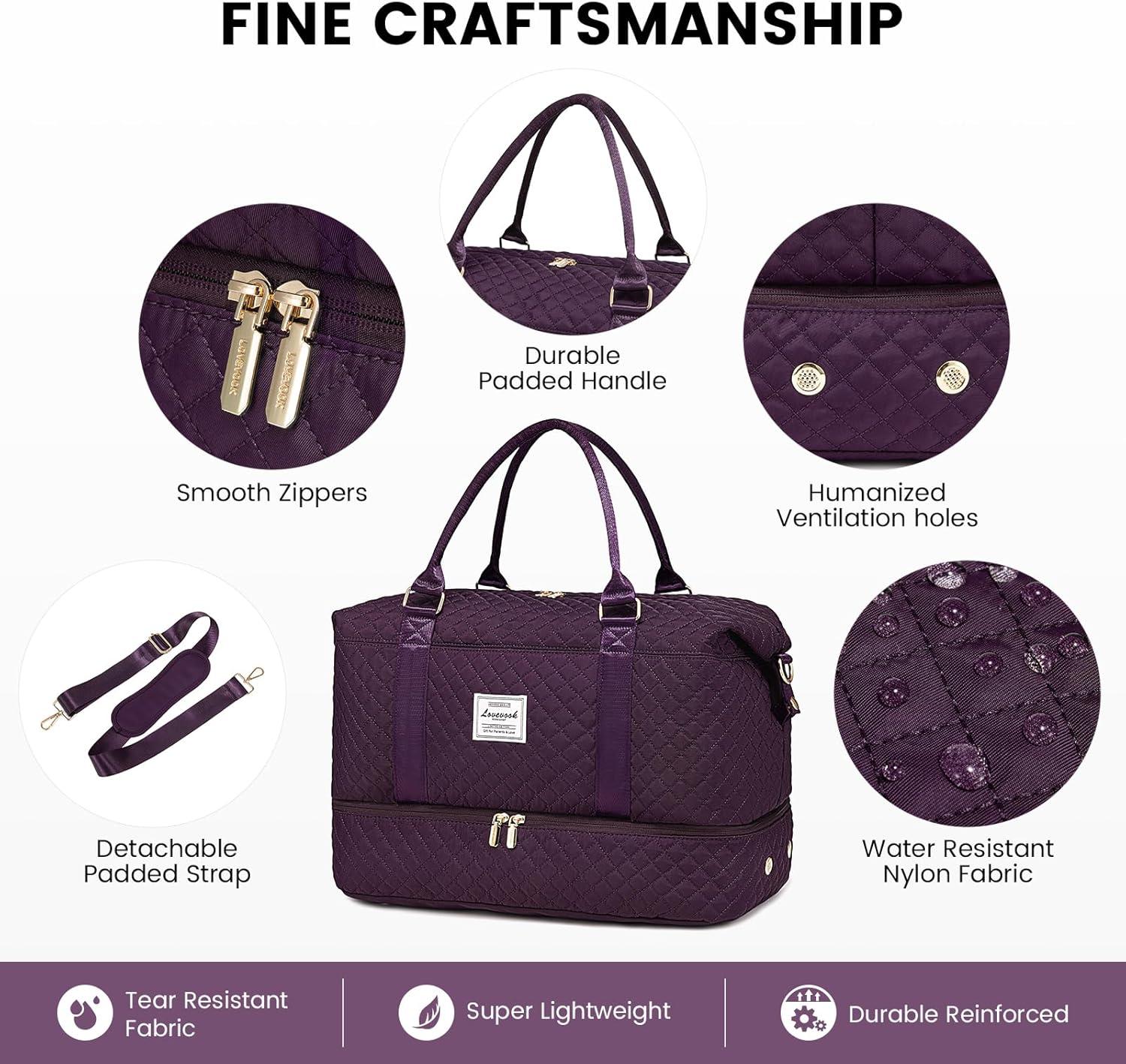 LOVEVOOK Travel Duffle Bag,Weekender Bags for Women with Shoe Compartment,Carry on Overnight Bag with Toiletry Bag,Gym Duffel Bag with Wet Pocket, Hospital Bags for Labor and Delivery(Dark Purple-c)