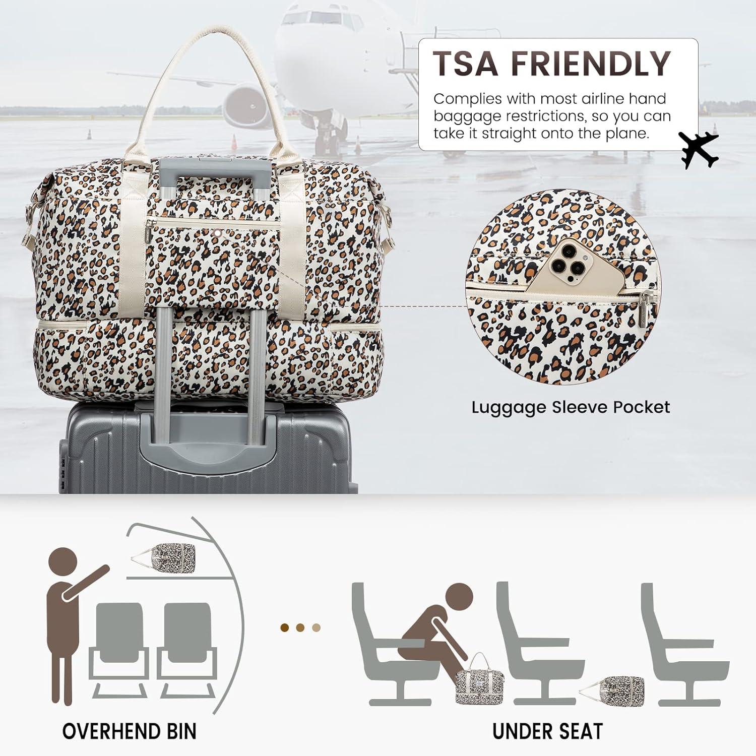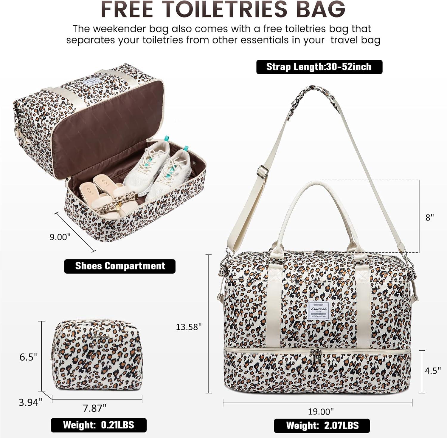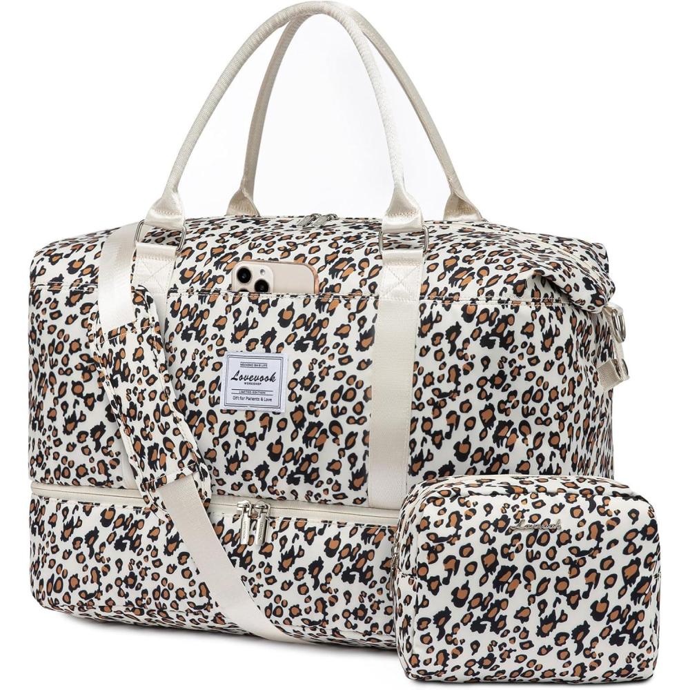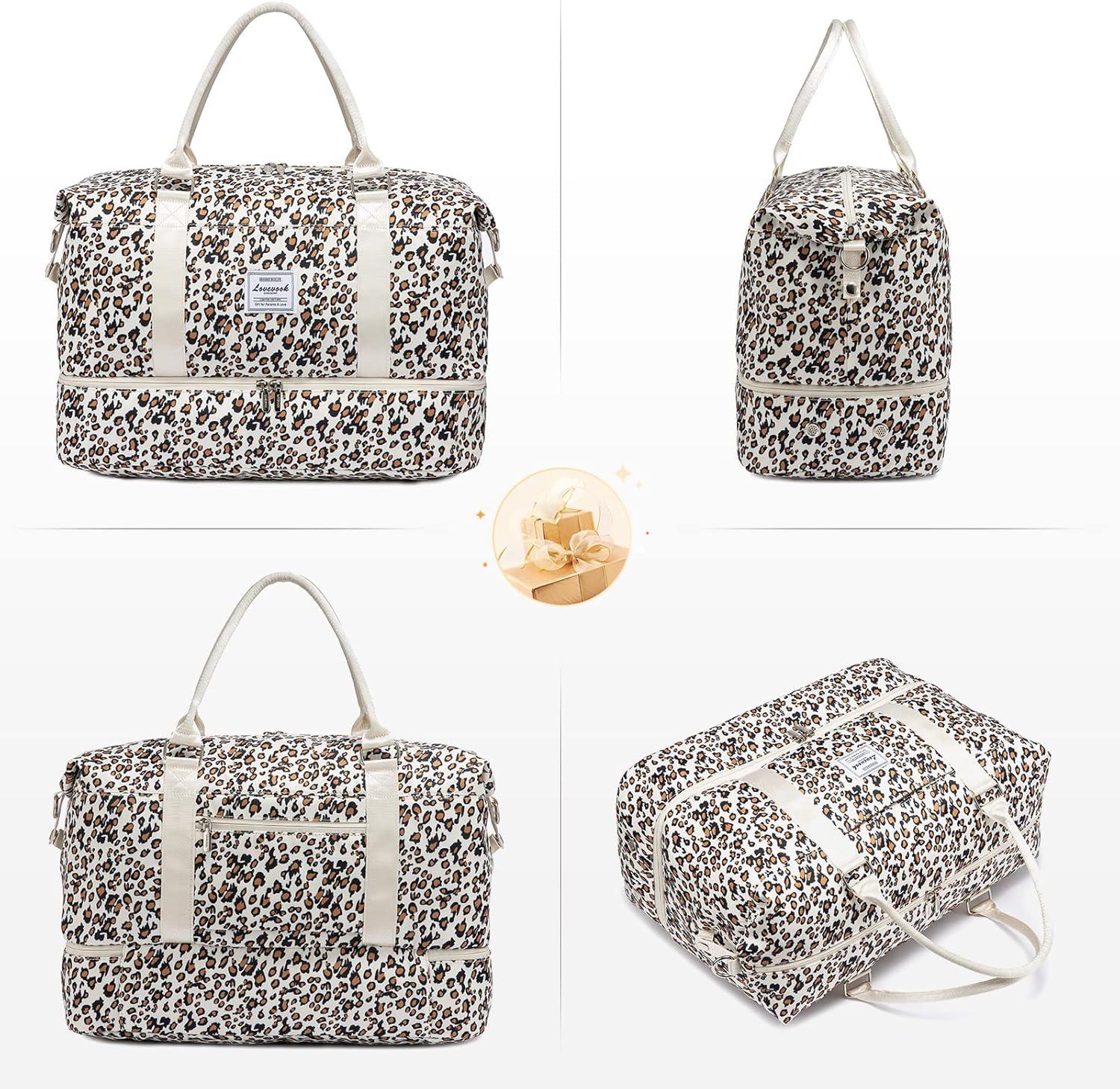 LOVEVOOK Travel Duffle Bag,Weekender Bags for Women with Shoe Compartment,Carry on Overnight Bag with Toiletry Bag,Gym Duffel Bag with Wet Pocket, Hospital Bags for Labor and Delivery(Leopard print)