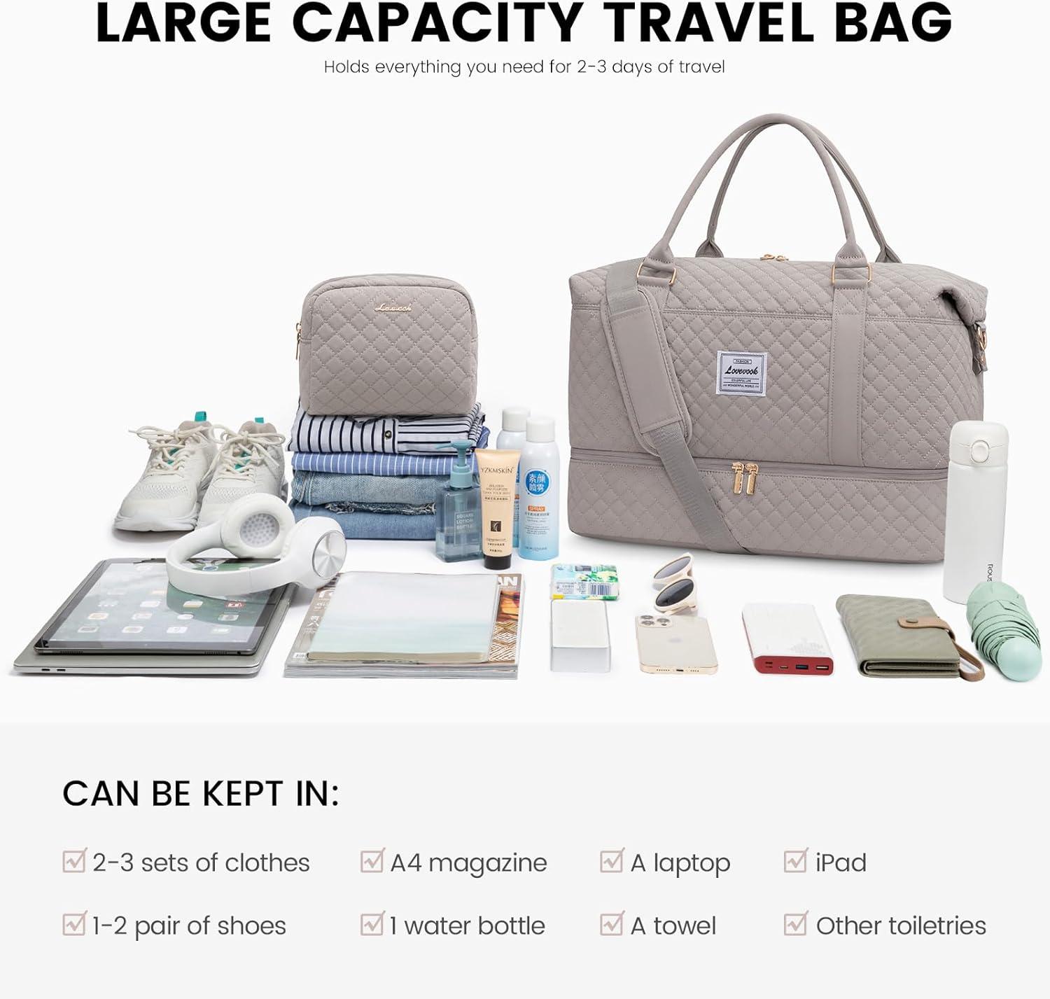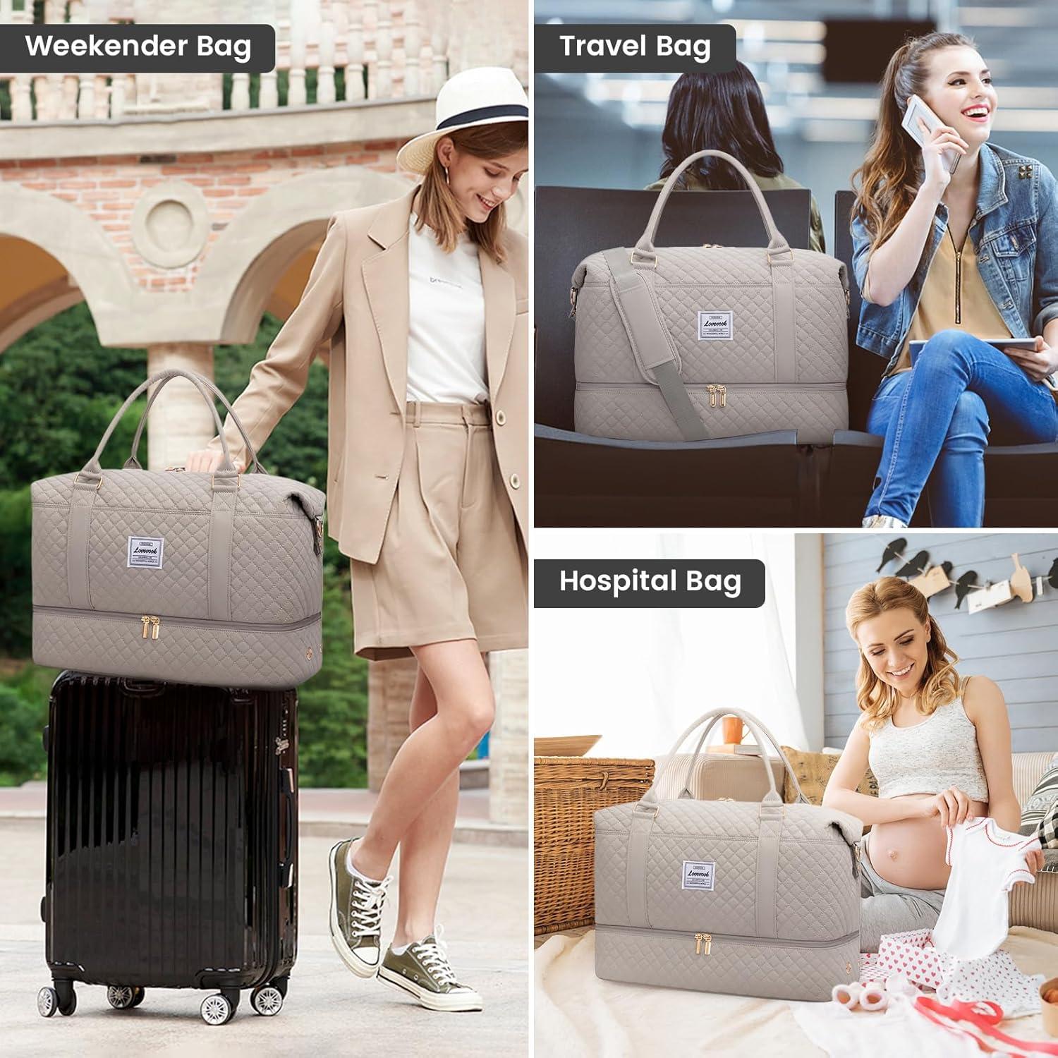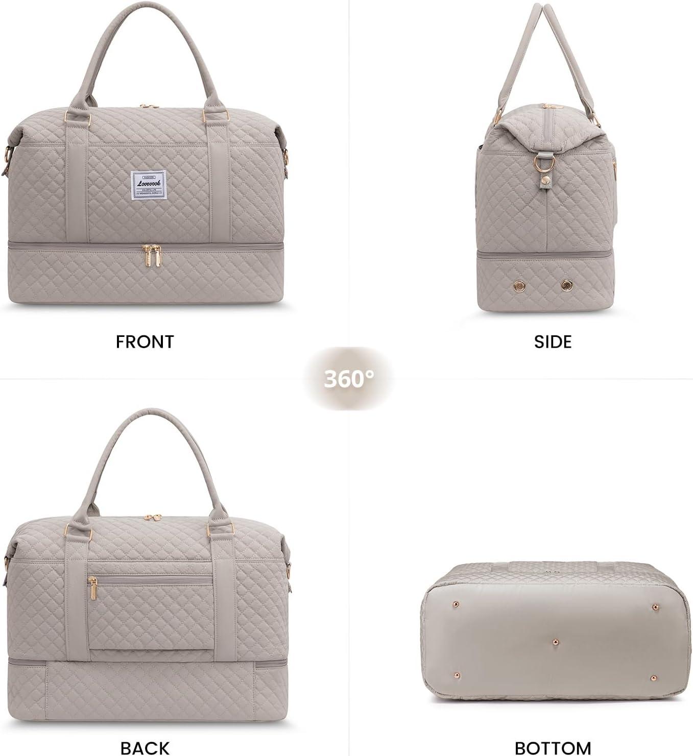 LOVEVOOK Travel Duffle Bag,Weekender Bags for Women with Shoe Compartment,Carry on Overnight Bag with Toiletry Bag,Gym Duffel Bag with Wet Pocket, Hospital Bags for Labor and Delivery(Light Dusty Rose)