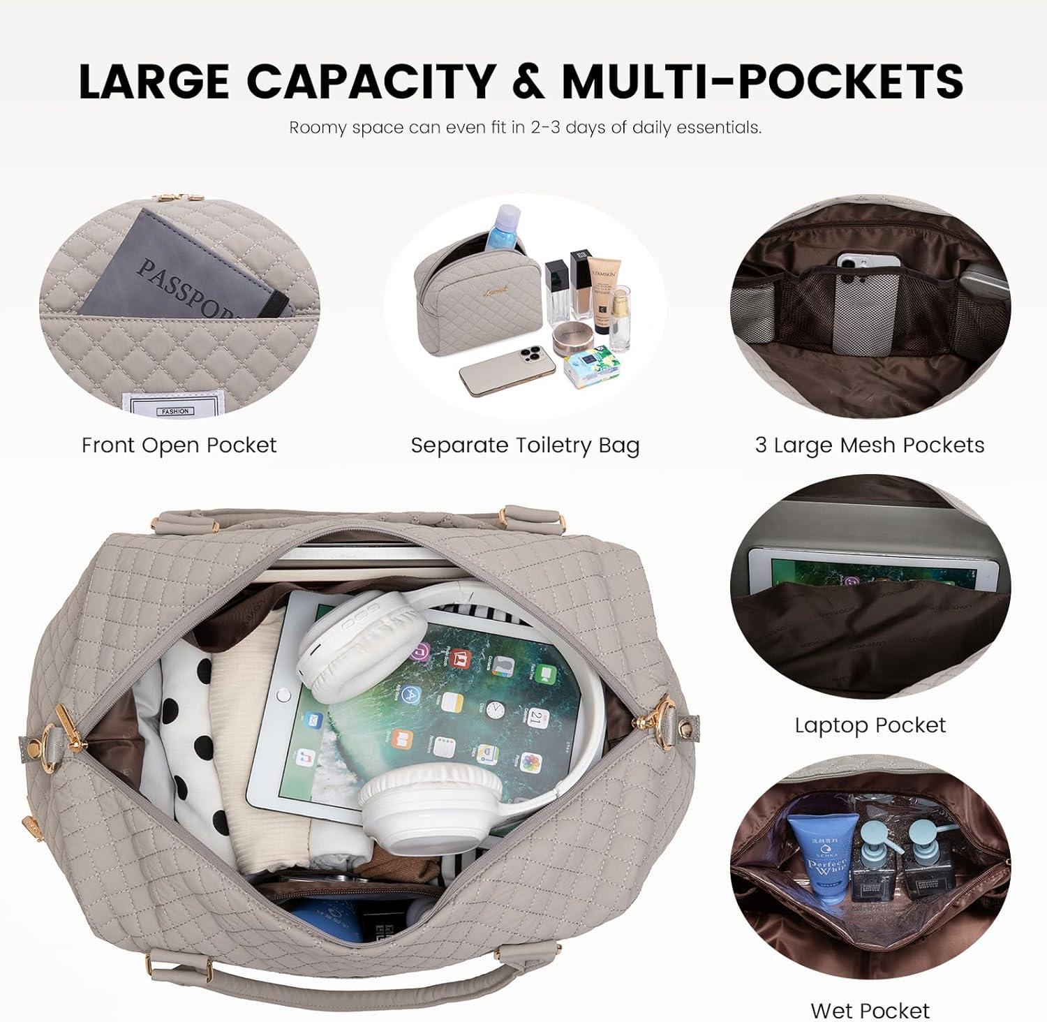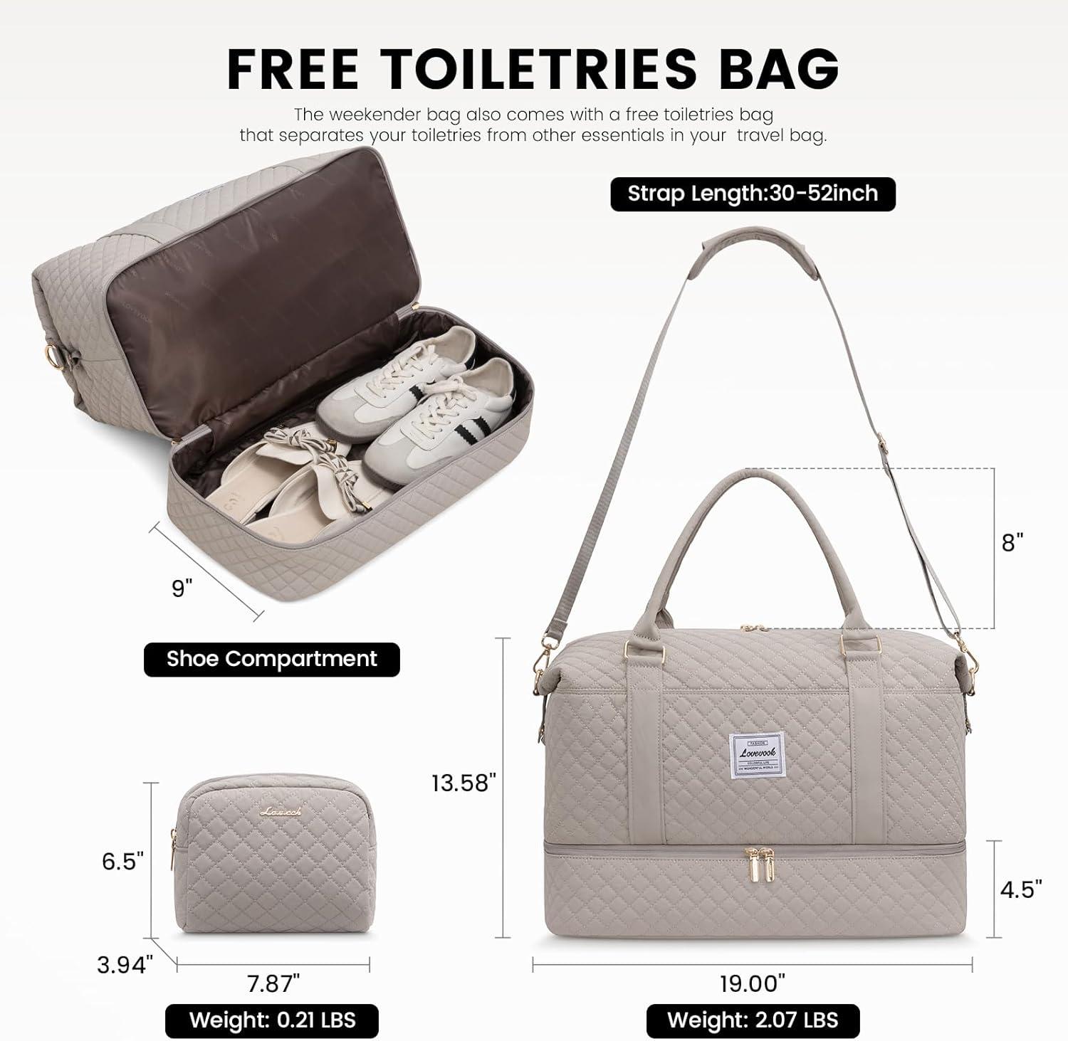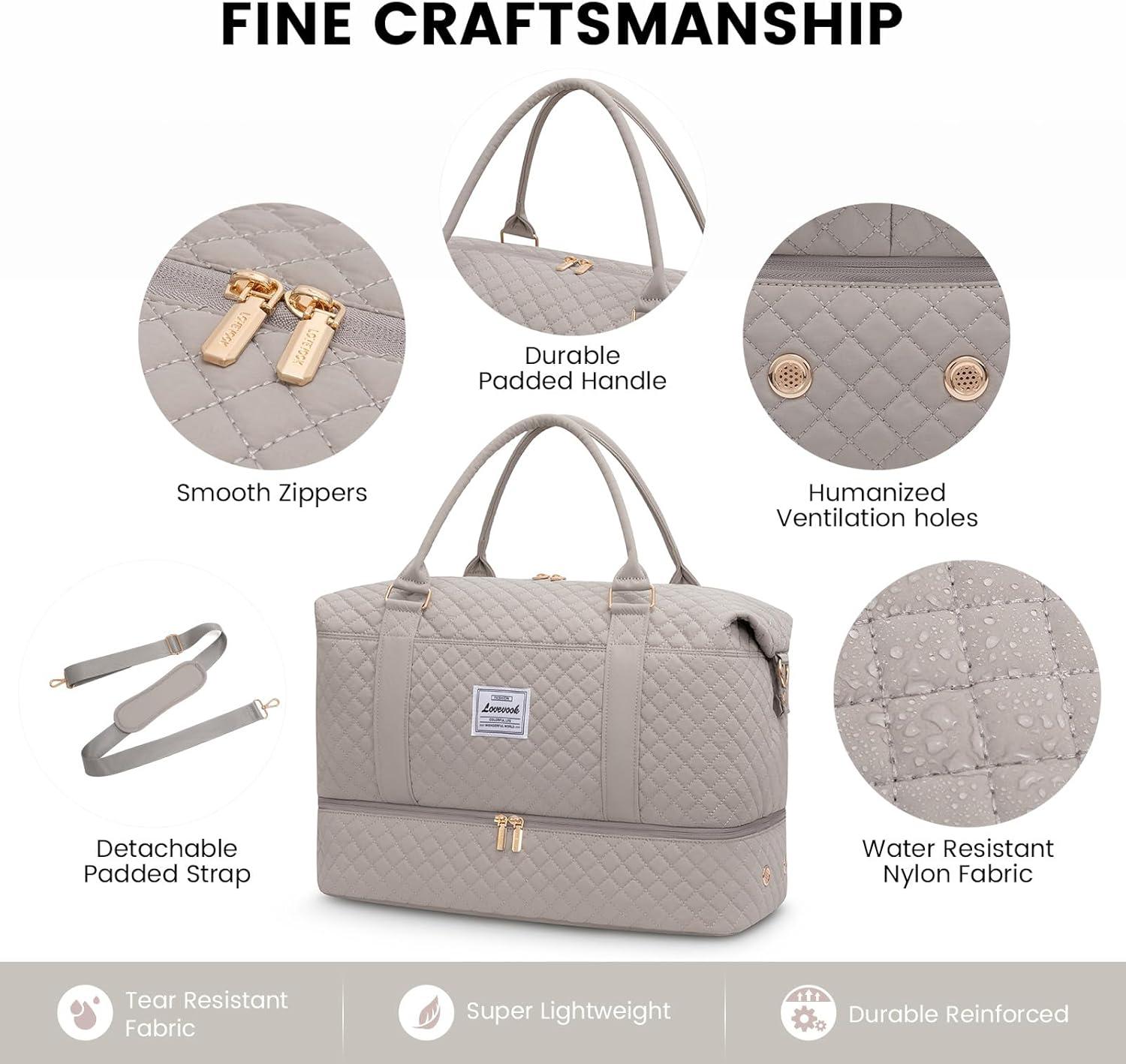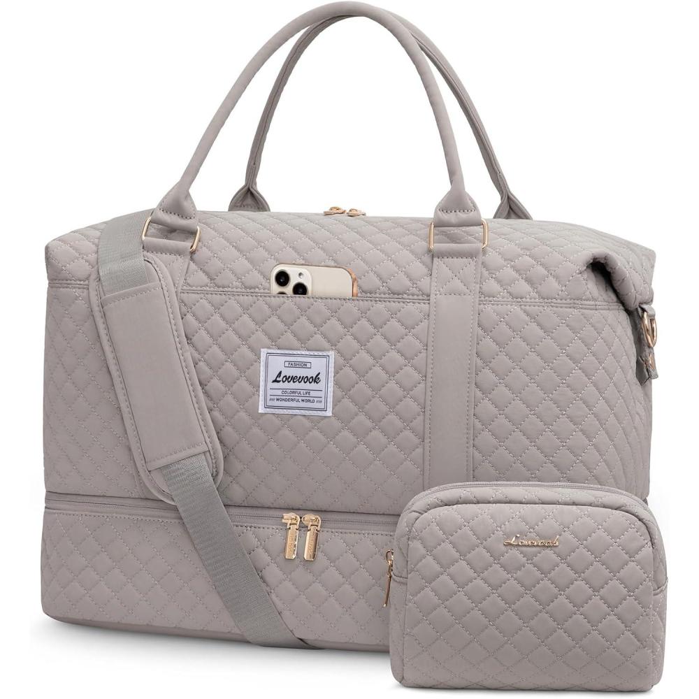LOVEVOOK Travel Duffle Bag,Weekender Bags for Women with Shoe Compartment,Carry on Overnight Bag with Toiletry Bag,Gym Duffel Bag with Wet Pocket, Hospital Bags for Labor and Delivery(Light Dusty Rose)
