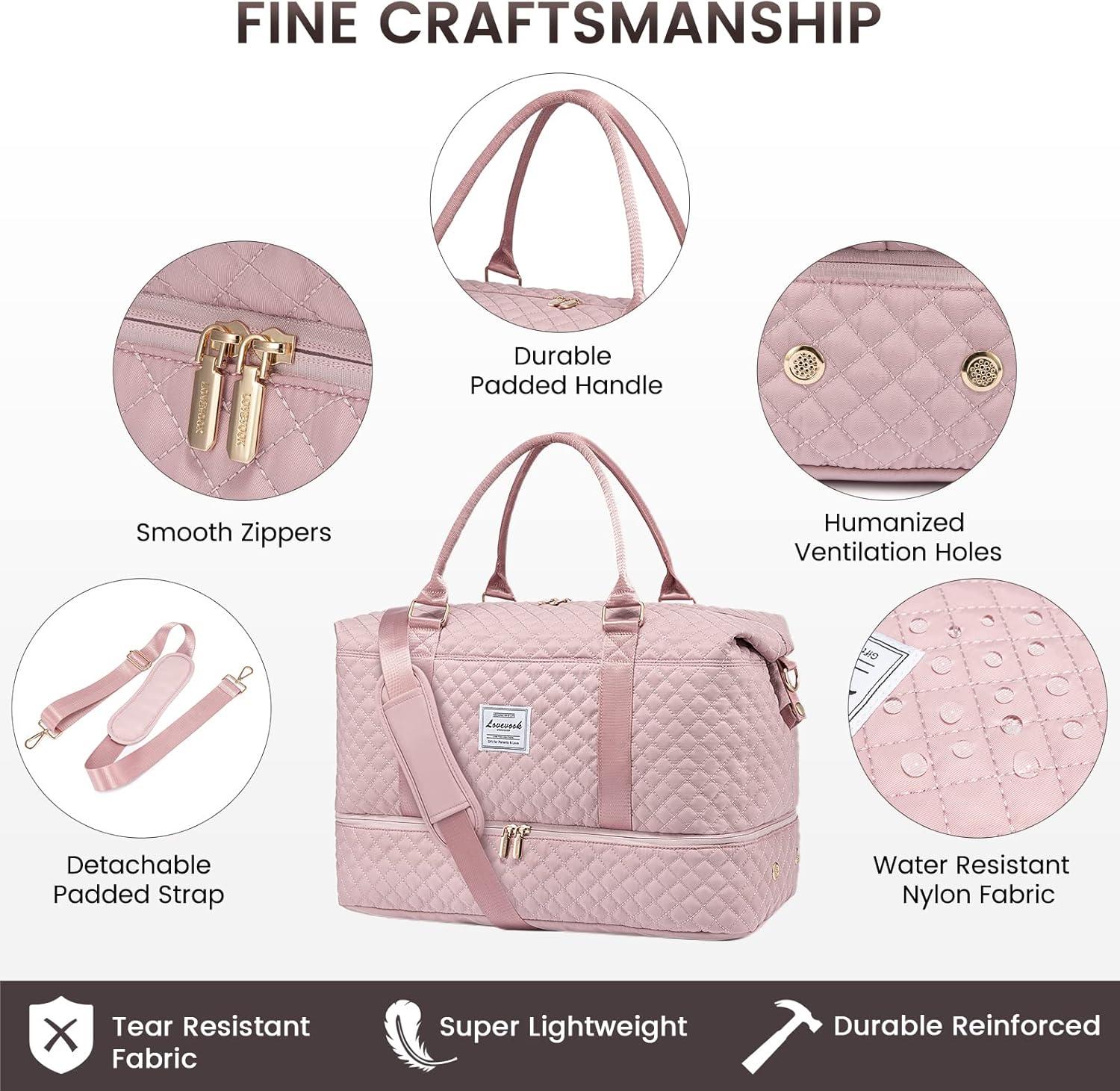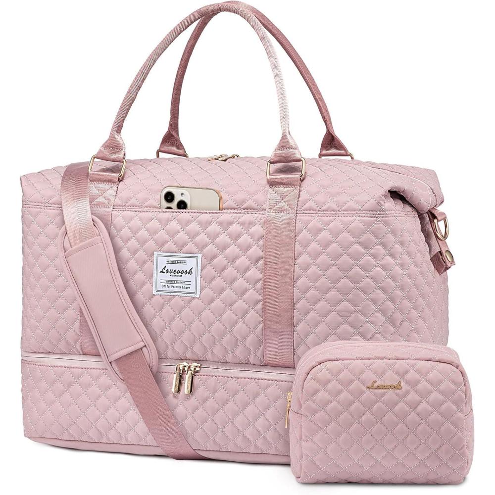 LOVEVOOK Travel Duffle Bag,Weekender Bags for Women with Shoe Compartment,Carry on Overnight Bag with Toiletry Bag,Gym Duffel Bag with Wet Pocket, Hospital Bags for Labor and Delivery(Pink-L)